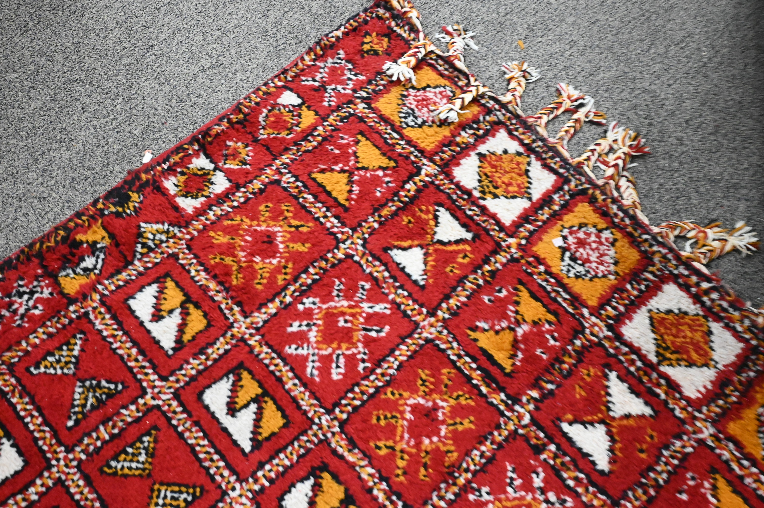 hand knotted thick pile sheep’s wool with braided fringe, signed Saft Morocco, circa 1970s