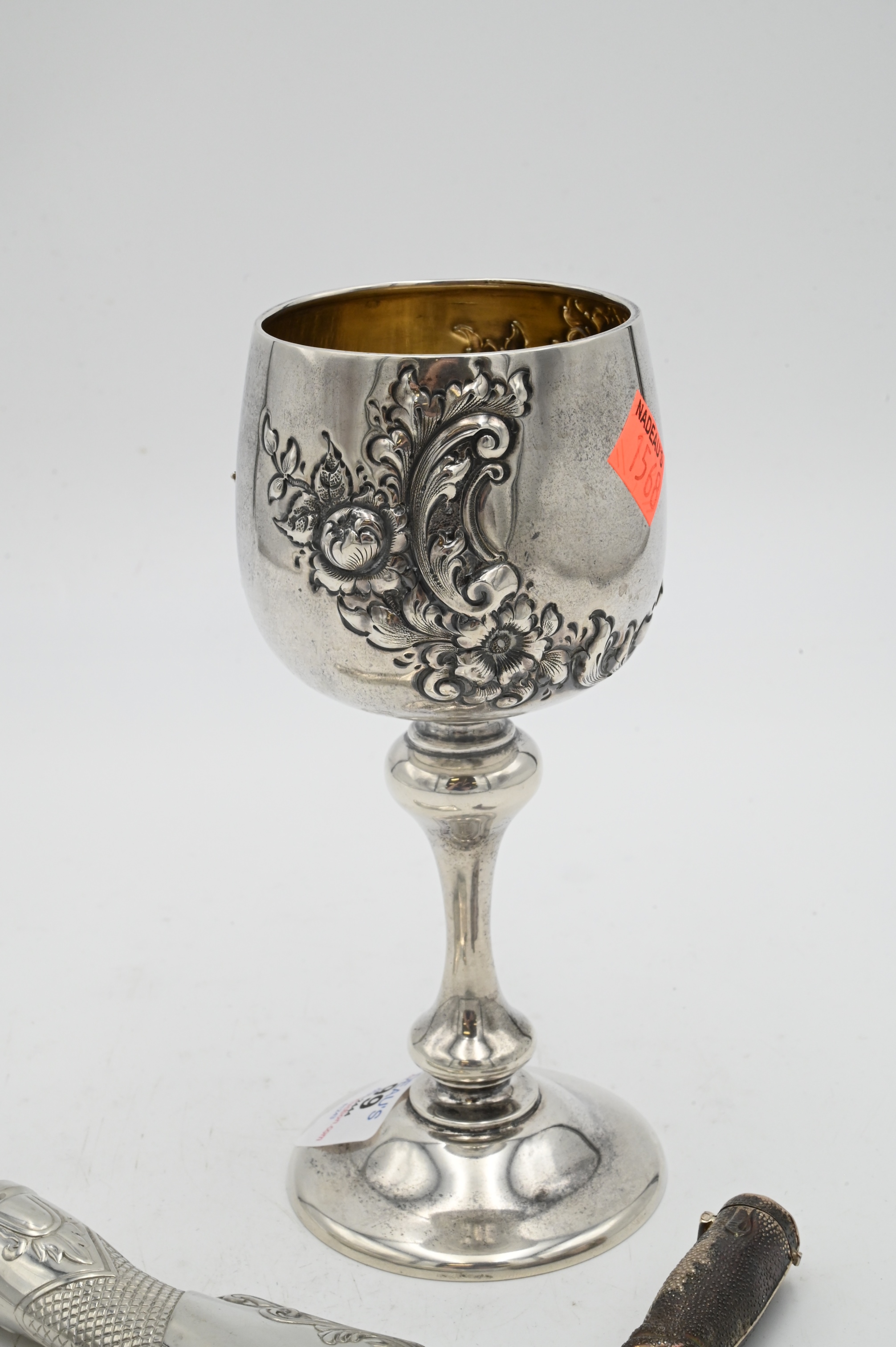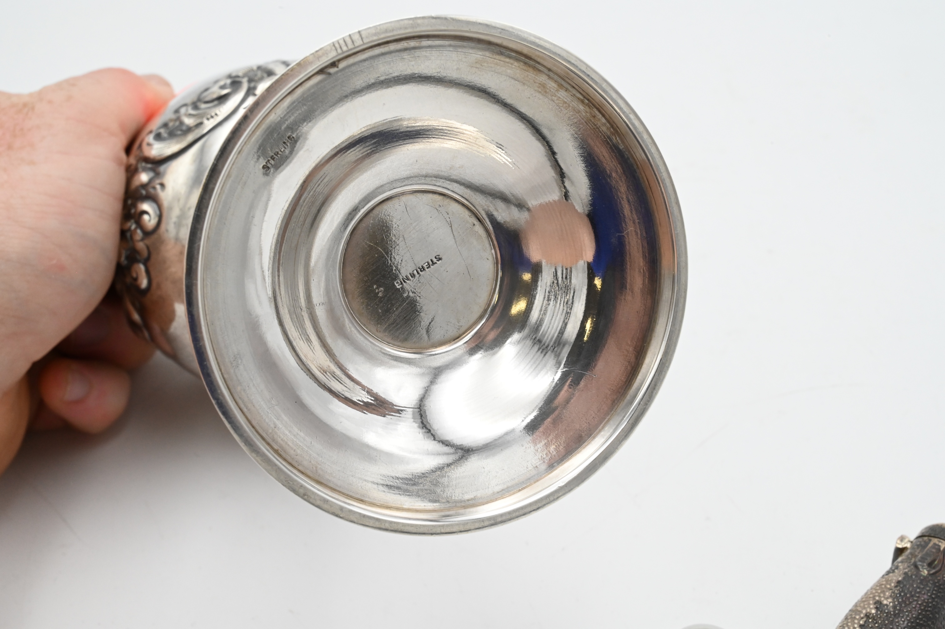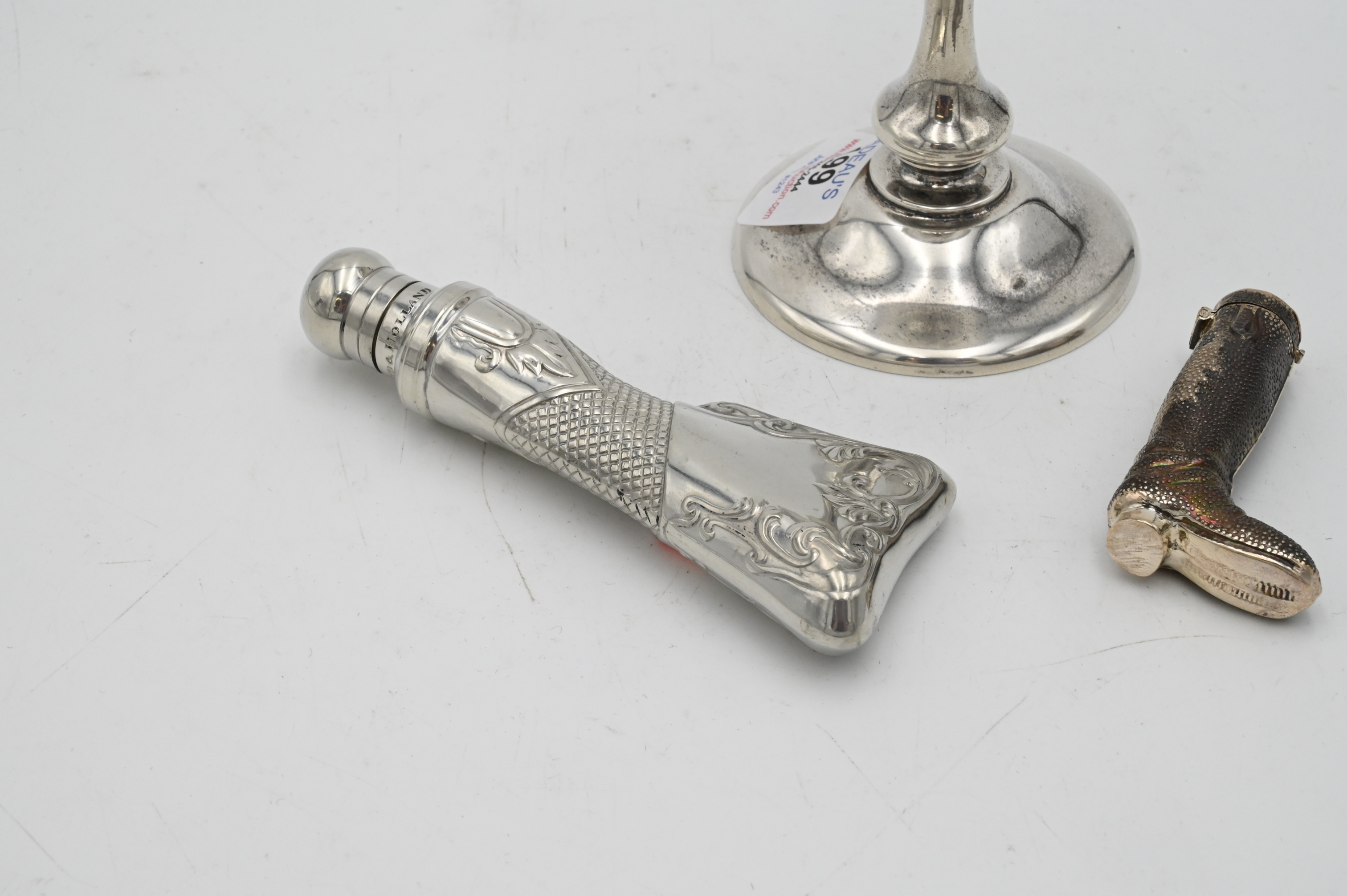 Three Piece Silver Lot, to include stem with two rifles, Holland & Holland, small flask/hipper and silver boot, height of stem 7 1/2 inches, 3.5 t.oz.