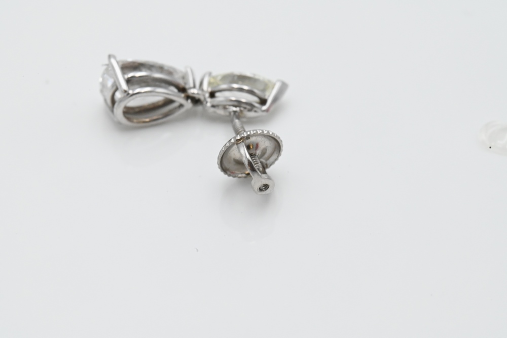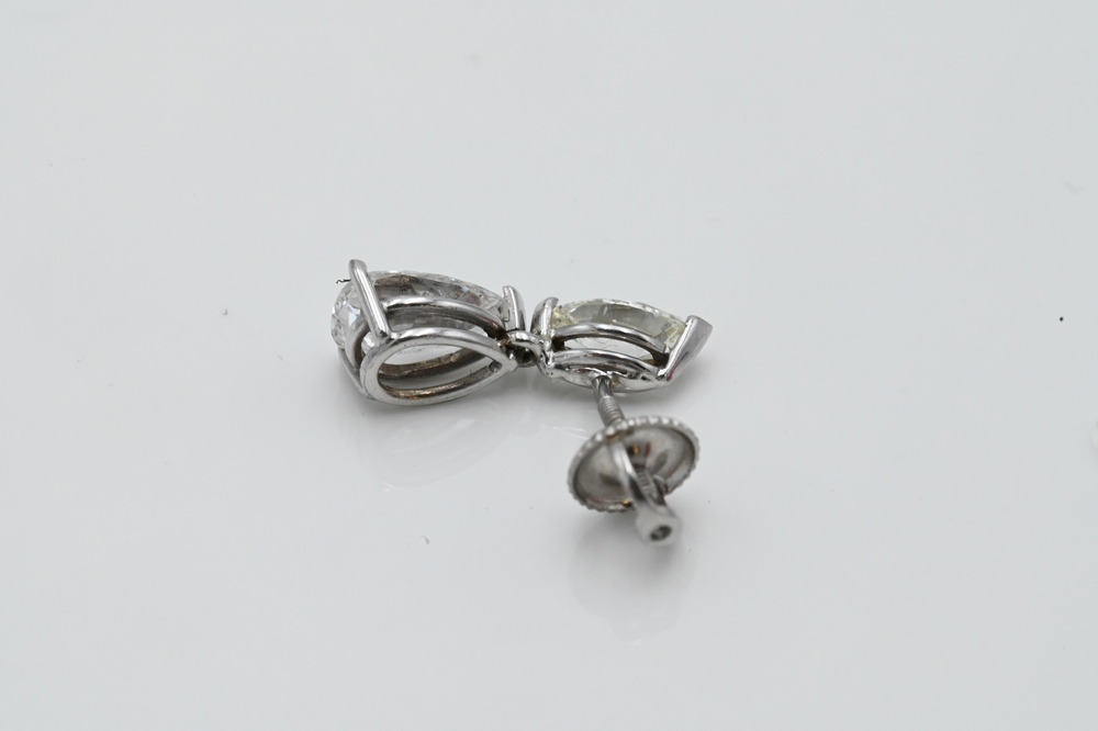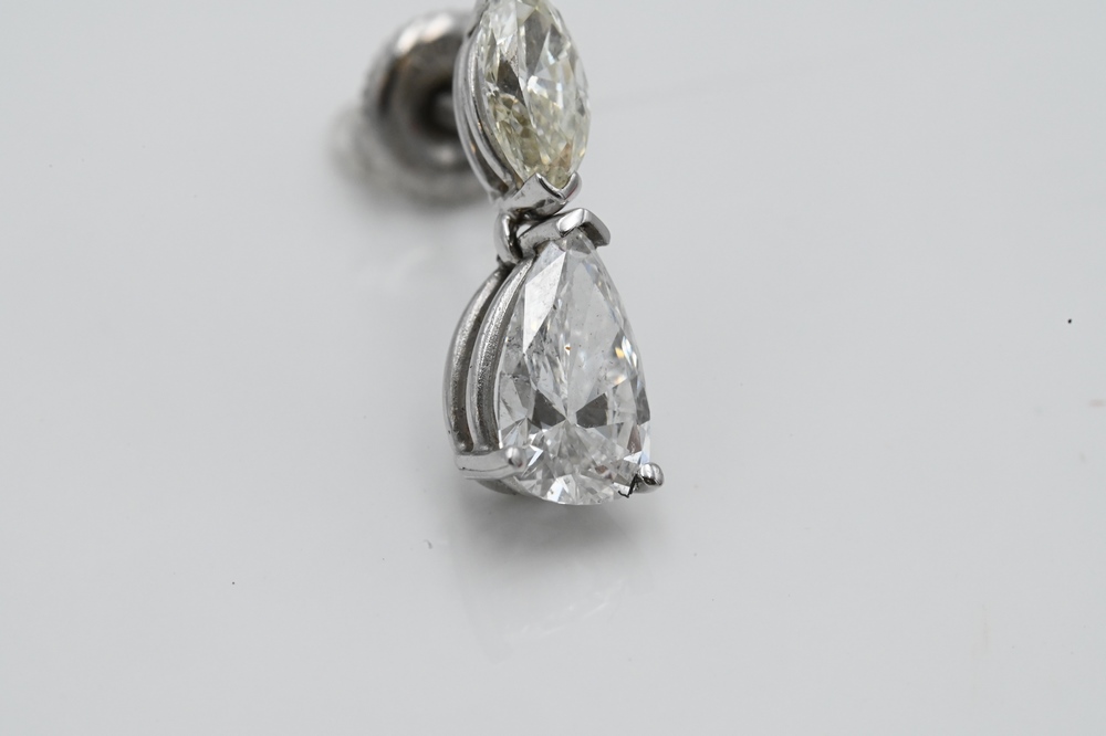 Lot 199: White Gold Single Pierced Earring, set with marquise diamond over teardrop diamond; teardrop 8.7 millimeter, 5.5 millimeters at wide…