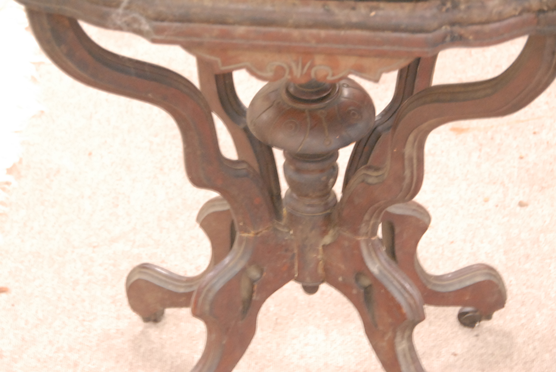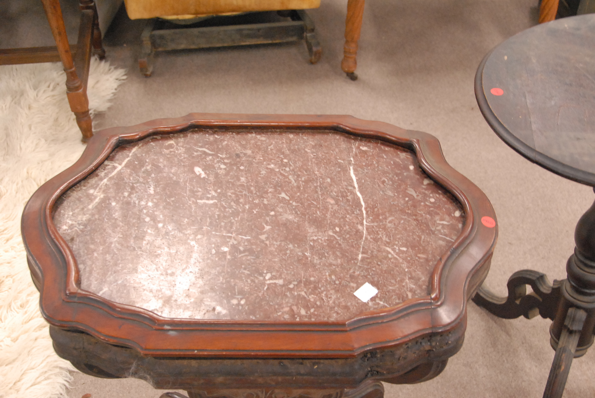 Victorian marble top table along with a round Victorian candle stand.