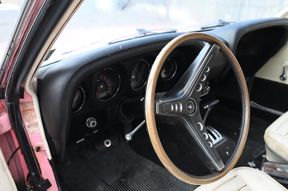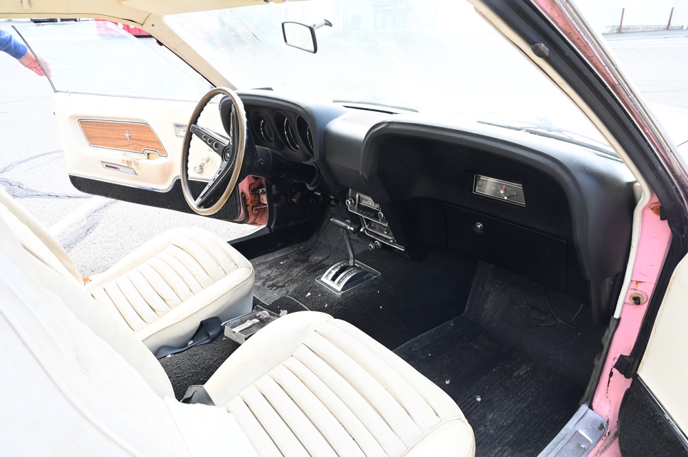 1969 351 Ford Mustang, single family owner, having Windsor V-8 5.8L engine with 39,158 miles, with original pink paint job and black vinyl top, VIN T01H141100. ***TERMS: For online participation – once the car sells we require the winning bidder to call our office immediately to make payment or a 20% deposit.**