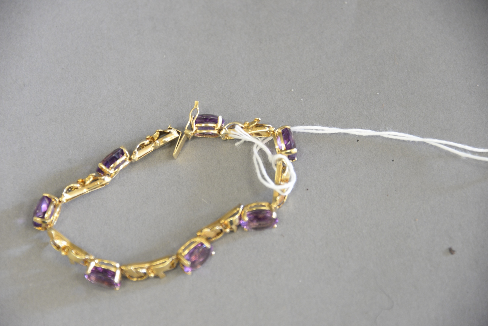Lot 1D: 18 Karat Gold Bracelet, set with oval amethysts, length 6 3/4 inches, total weight 20.3 grams.