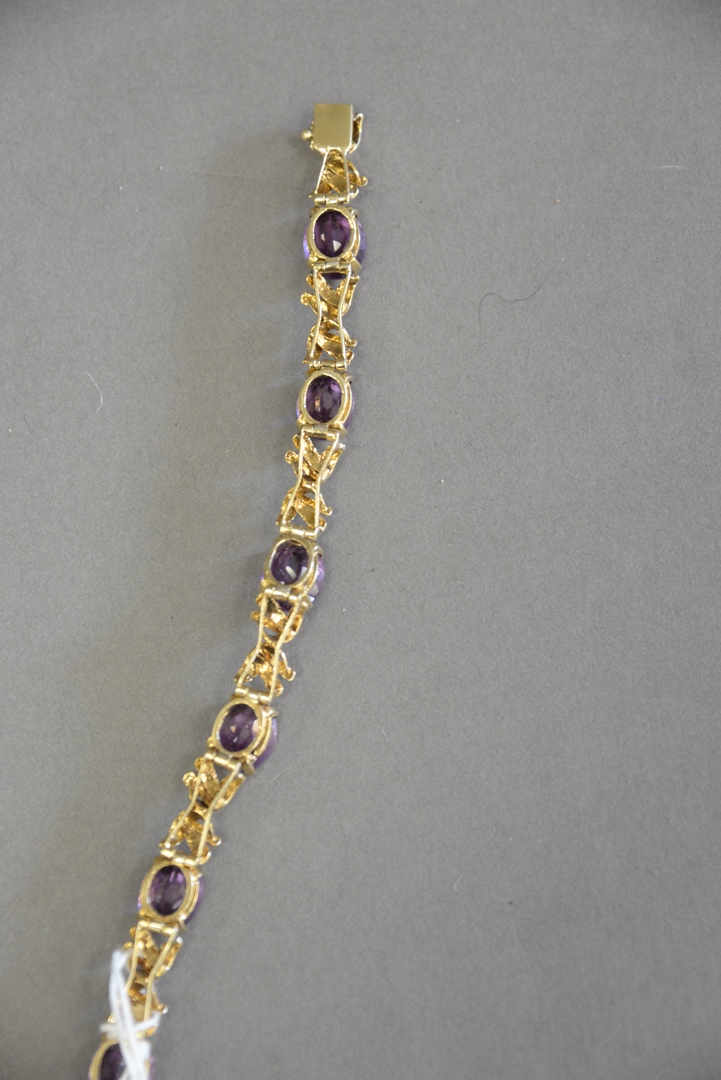 18 Karat Gold Bracelet, set with oval amethysts, length 6 3/4 inches, total weight 20.3 grams.