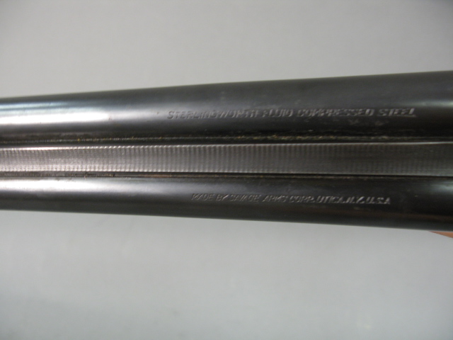 Fox Sterlingworth double barrel shotgun by Savage Arms, 20 gauge, double triggers pistol grip, 28 barrel, single bead sight, marked Sterlingworth fluid compressed steel, Fox Sterlingworth, with checkered forearm. Serial# 26335, code 31