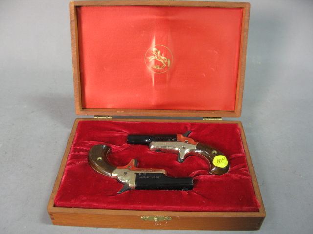 Two Colt Derringer model# 4, single shot, .22 short caliber, 2 1/2 barrel, in original boxes. Serial# 79817D and Serial# 79816D, Code 27 and Code 28.