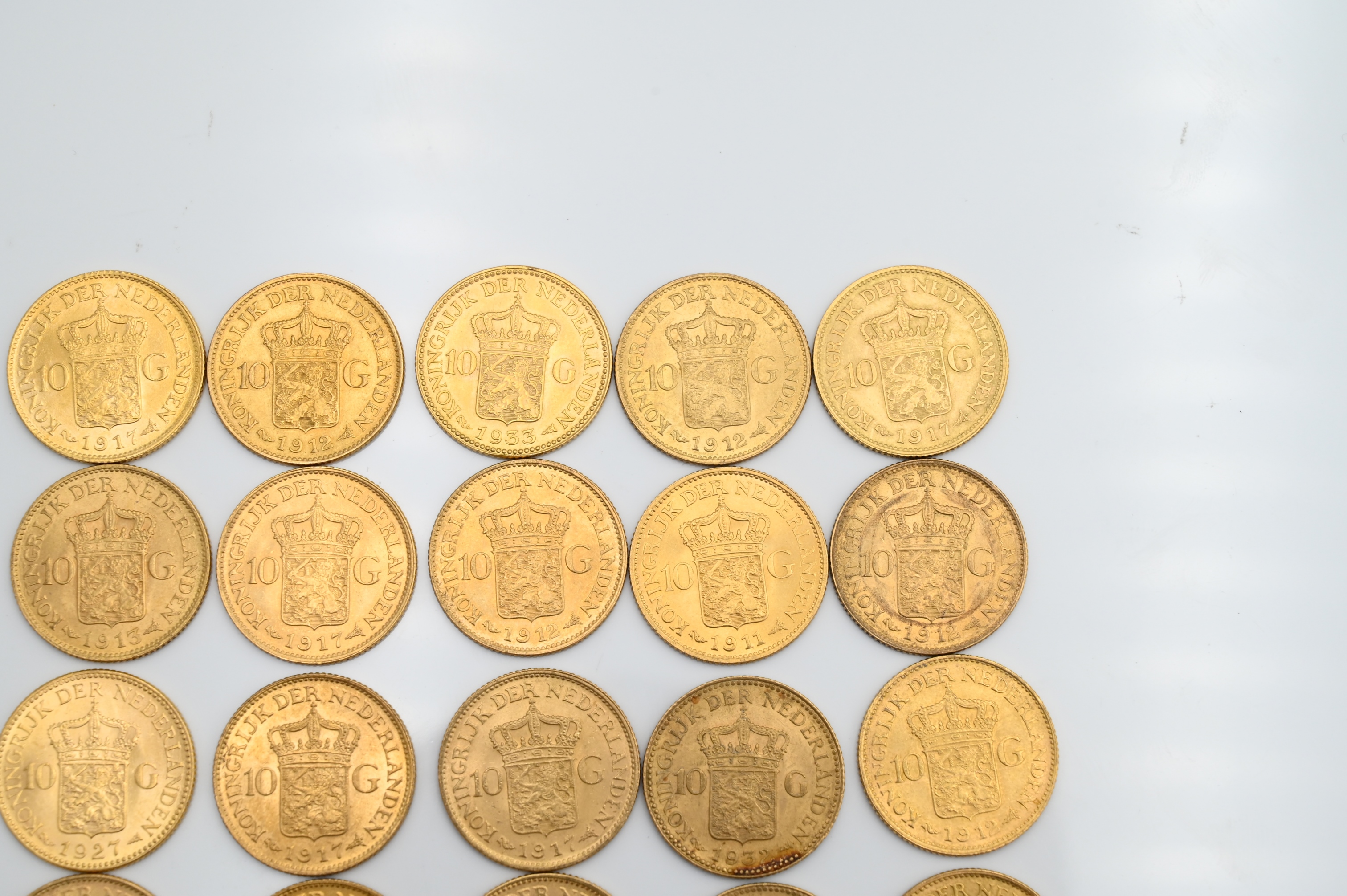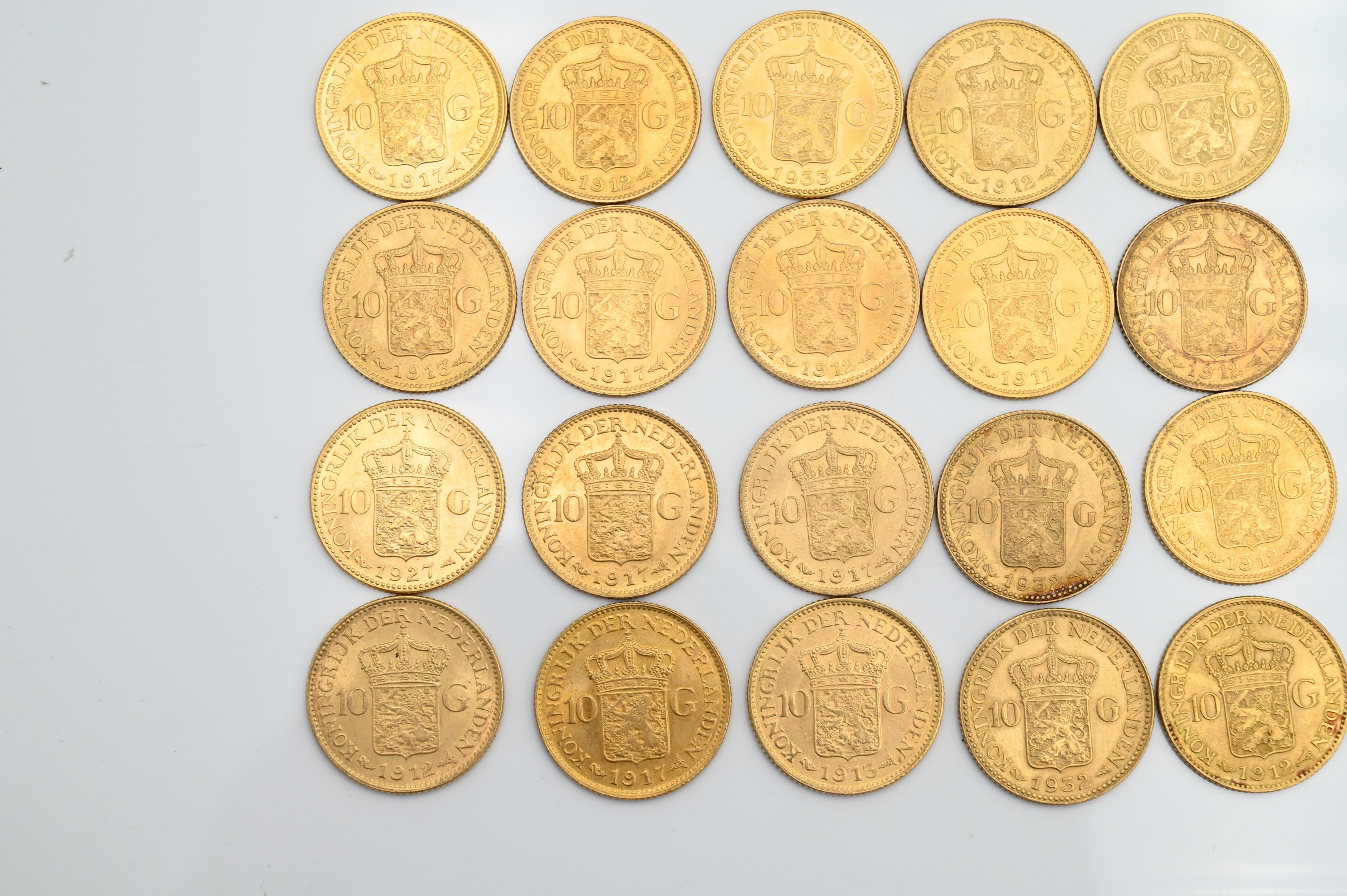 20 Dutch 10 Guilder Uncirculated Gold Coins, 134.3 gr.