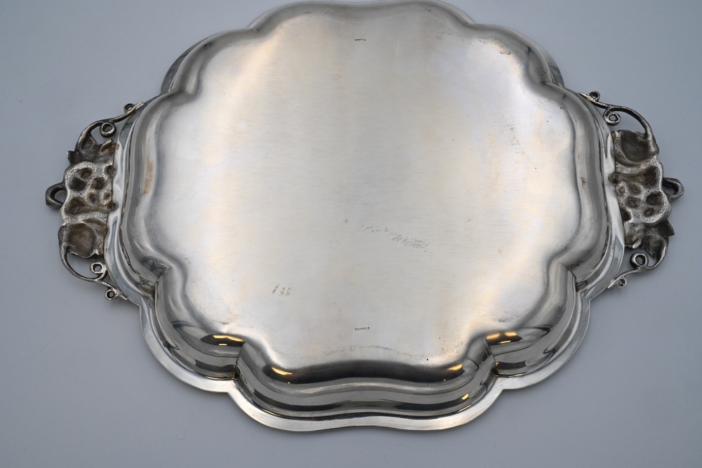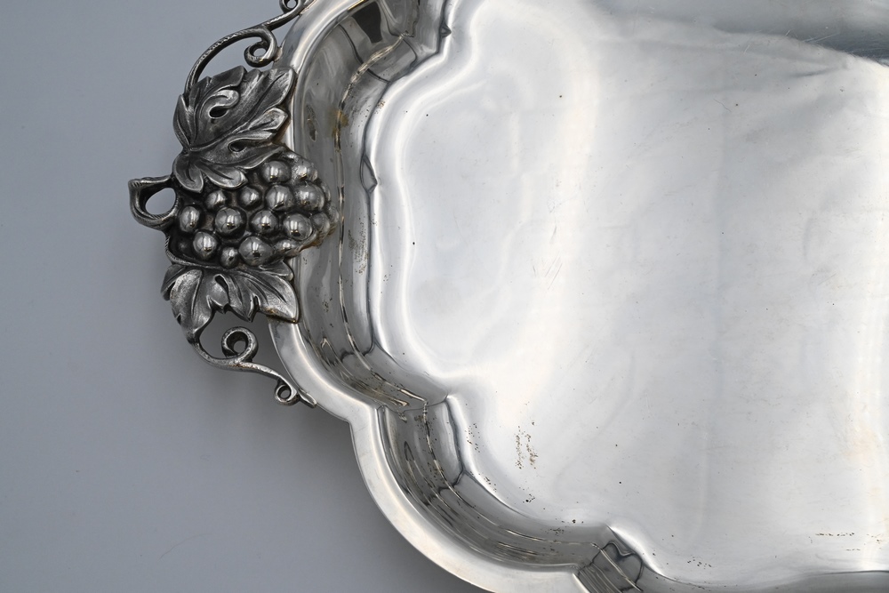 Lot 2: Durham Sterling Silver Serving Tray oblong with grape and leaf handles length 16 1/2 inches, width 12 1/2 inches 40.5 t.oz.