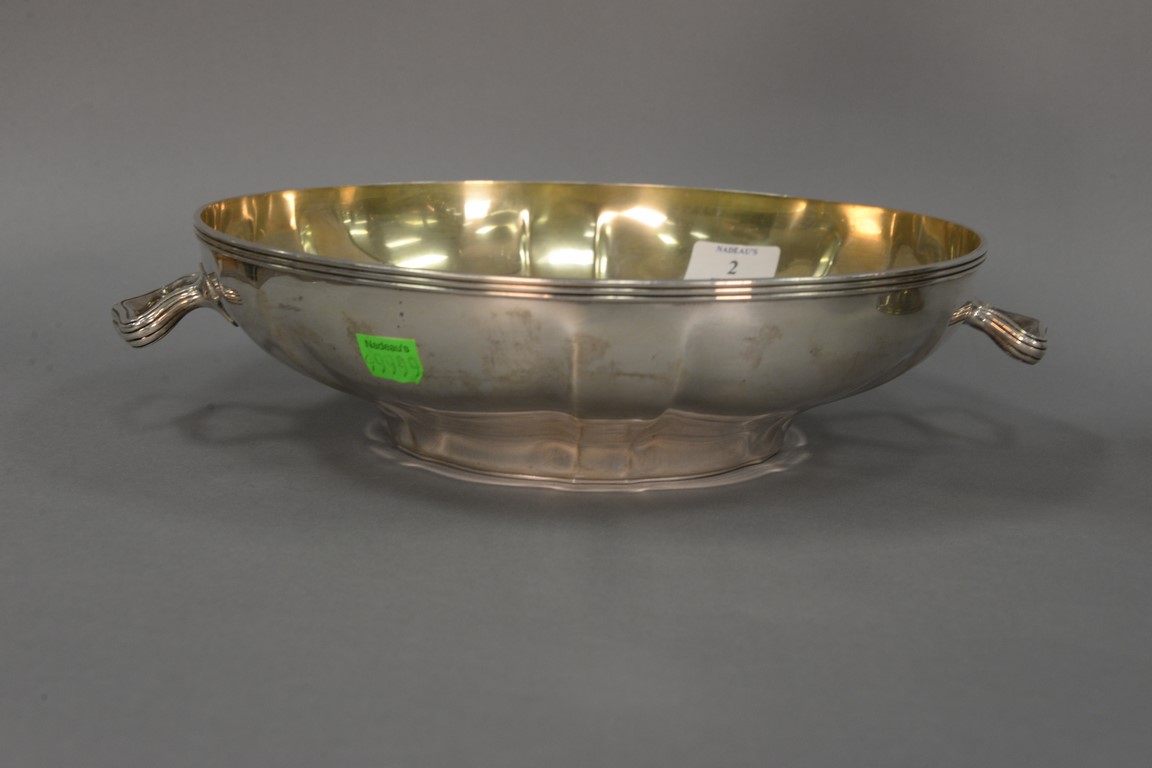 Gorham sterling silver bowl with handles and gold wash interior. lg. 12 1/2in., 26.74 t oz.