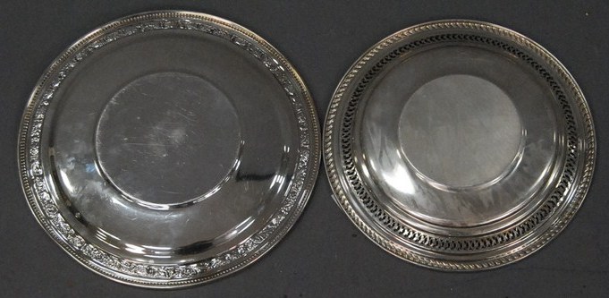 Two sterling silver plates, 11.87 t oz. Provenance: Estate of Judy Gengras McDonough of West Hartford, CT.
