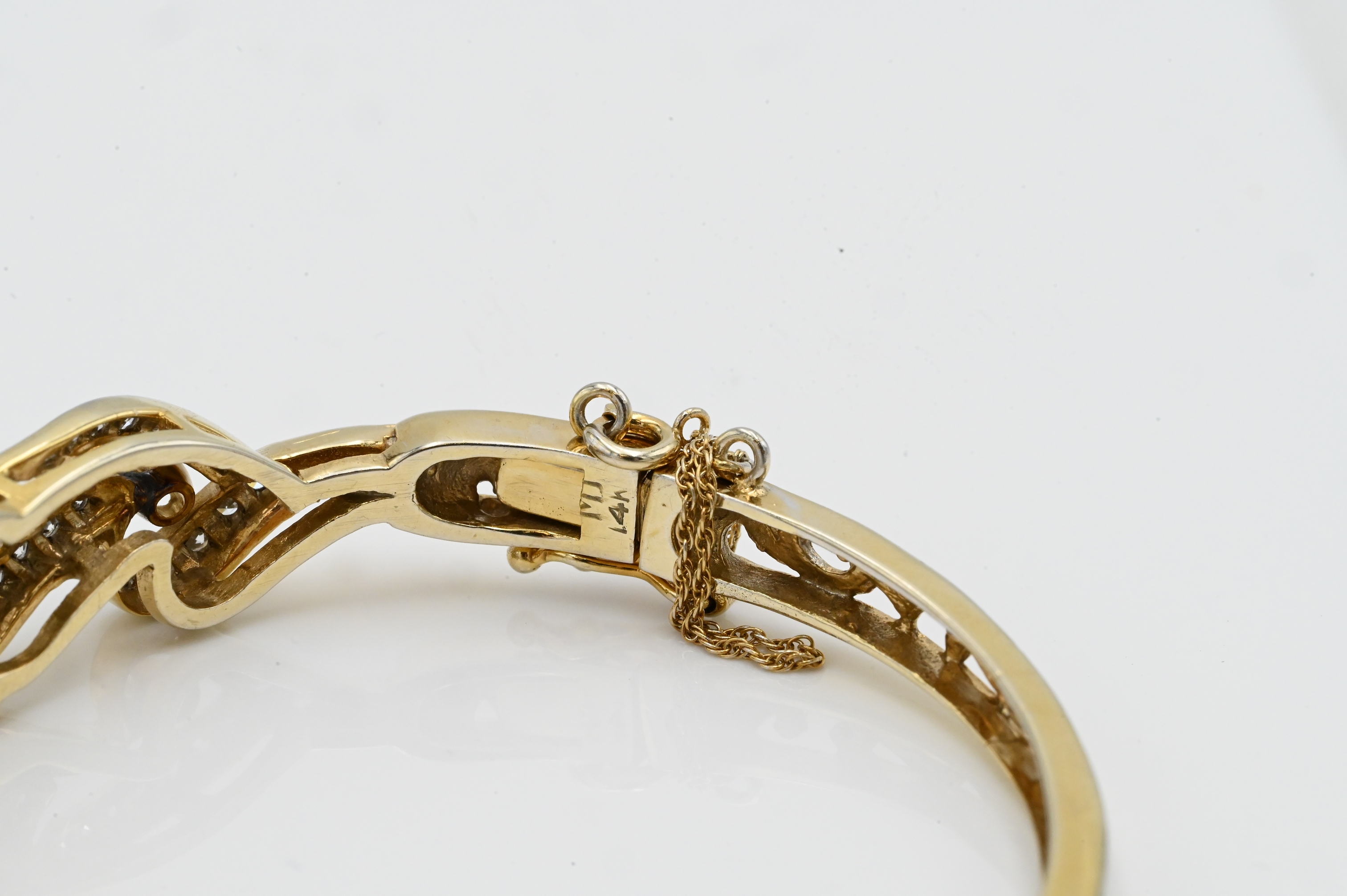 Lot 20: 14K Yellow Gold Bangle Bracelet with Cluster Diamonds and an Approximately 1.5 Carat Center Stone