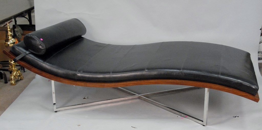 Lot 20: Bolier & Company Domicile leather chaise with walnut frame and stainless steel base, lg. 90in. wd. 45in.