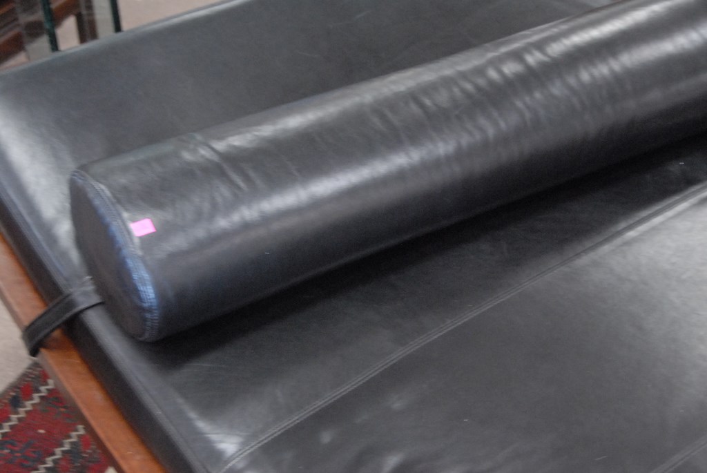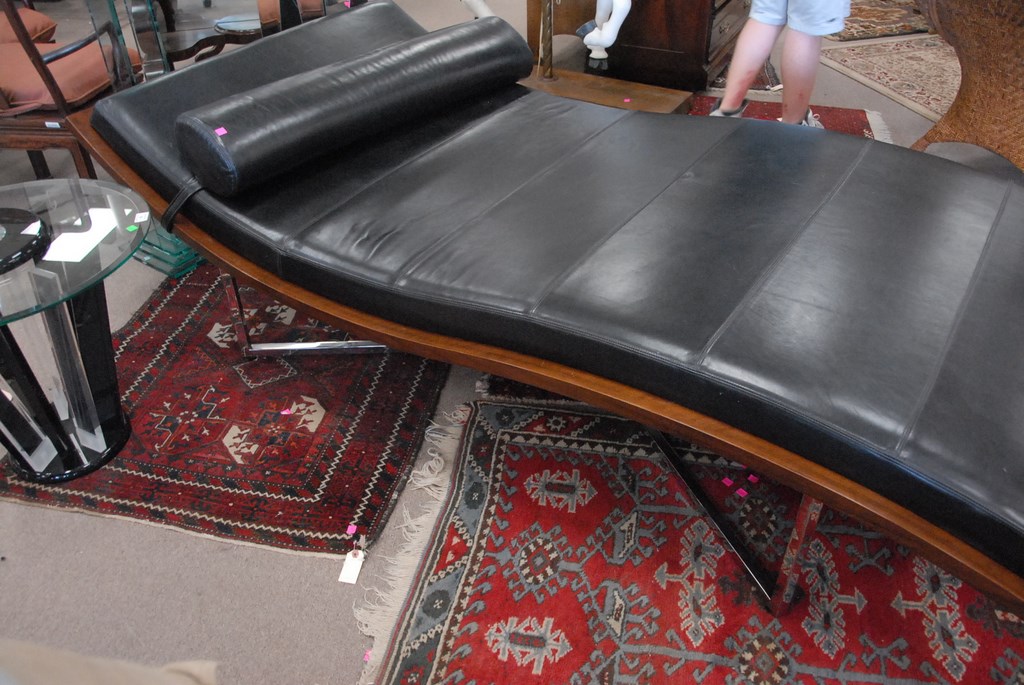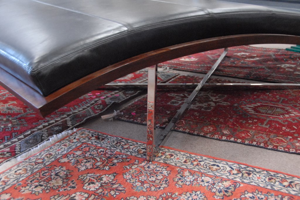 Bolier & Company Domicile leather chaise with walnut frame and stainless steel base, lg. 90in. wd. 45in.