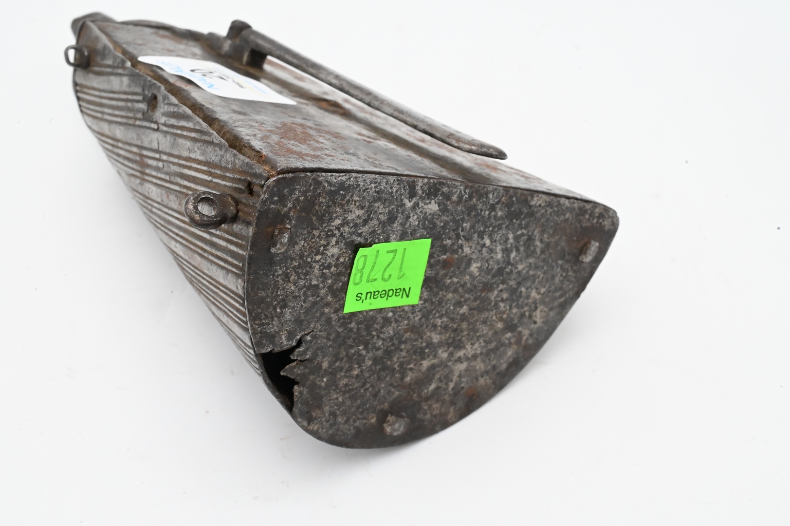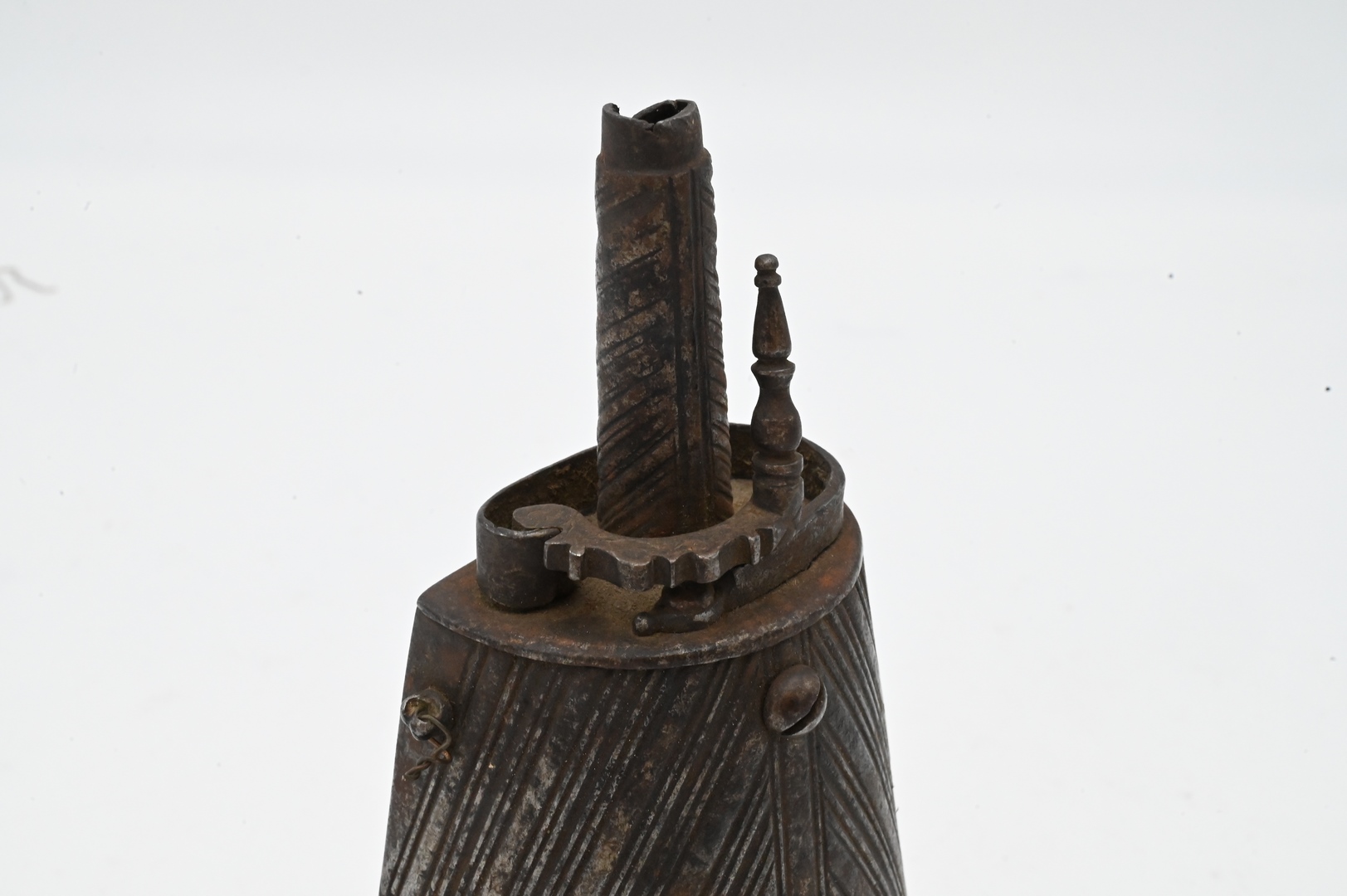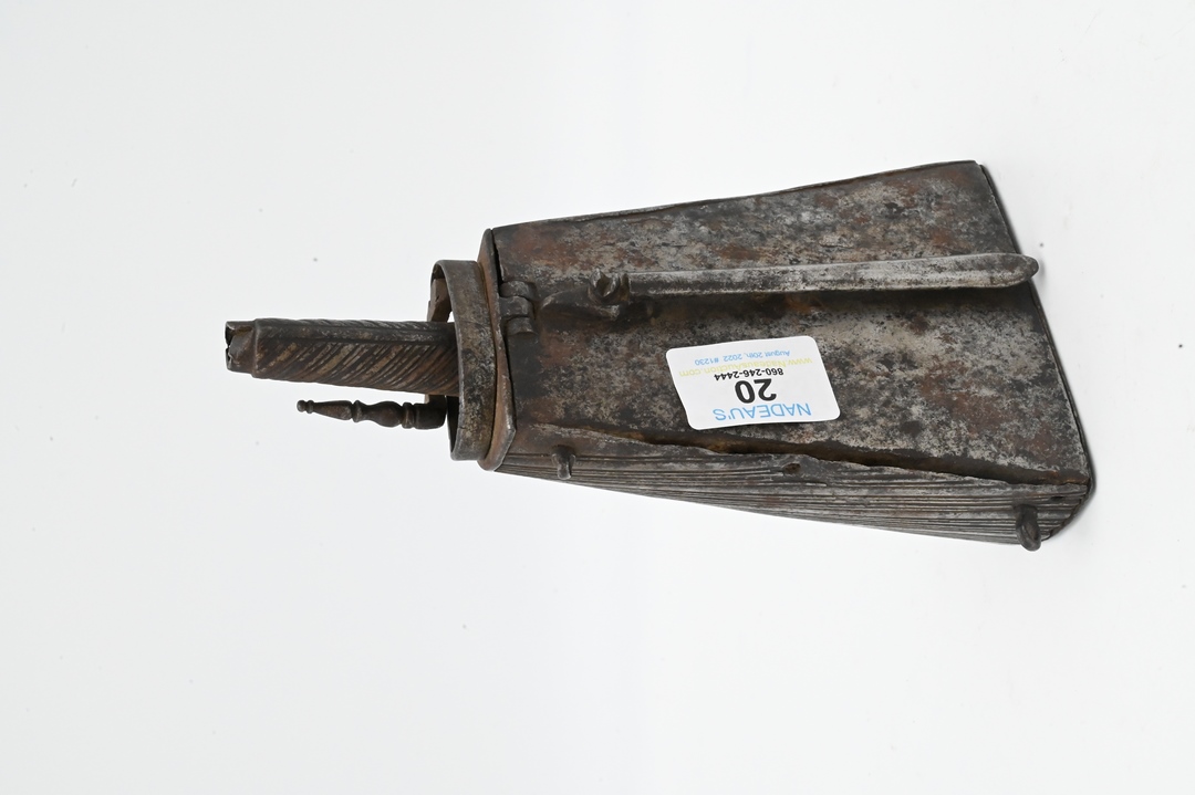 Early Metal Powder Horn, 17th – 18th century, height 8 inches. Provenance: Estate of Peter Tillou, Litchfield, Connecticut.