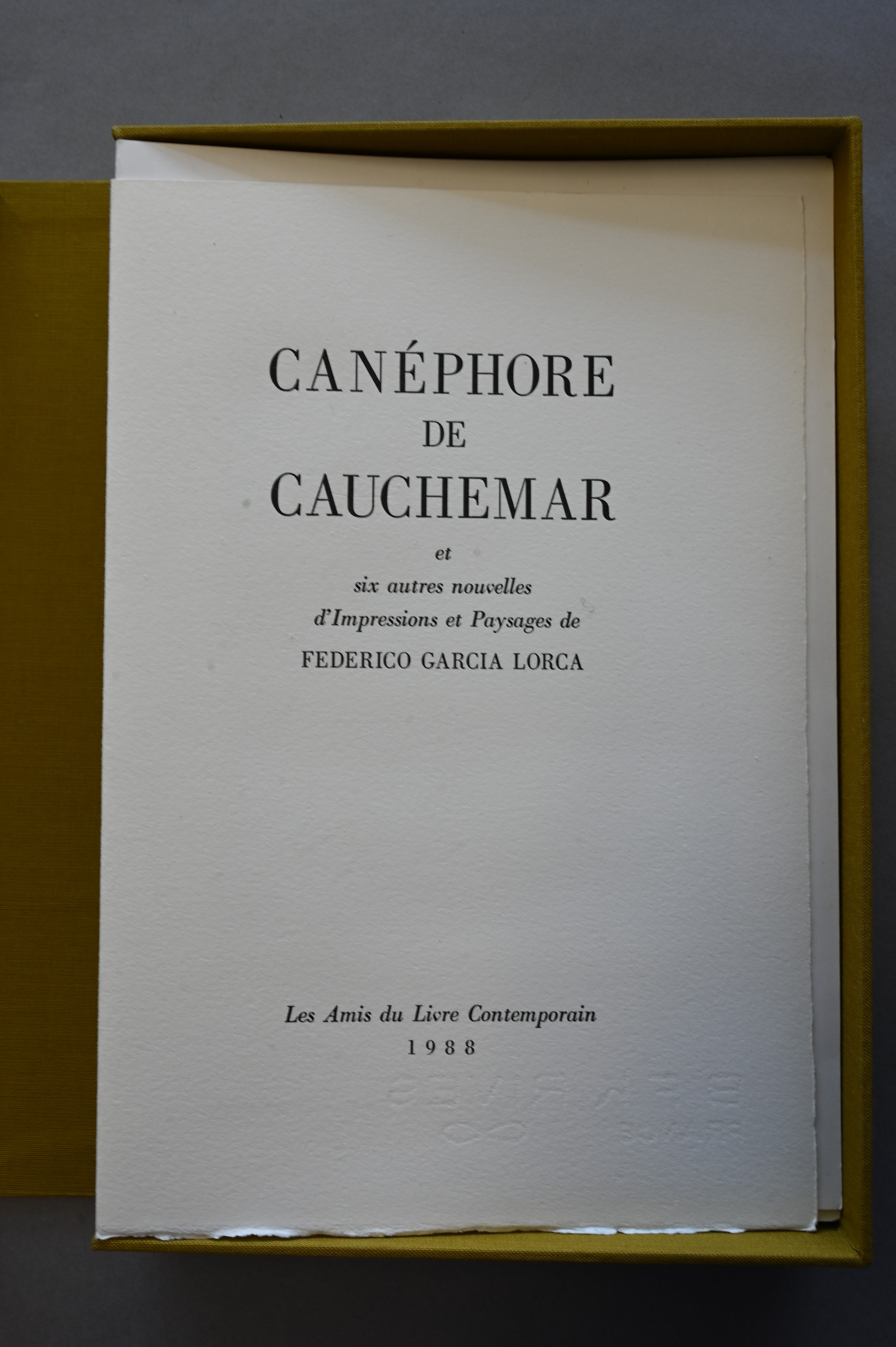 with impressions by Federico Garcia Lorca, published by Les Amis Au Livre Contemporain 1988, edition #52, including signed engraving