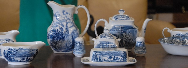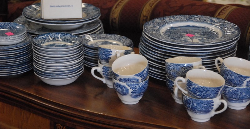 Large lot of Liberty blue Staffordshire china dinnerware.