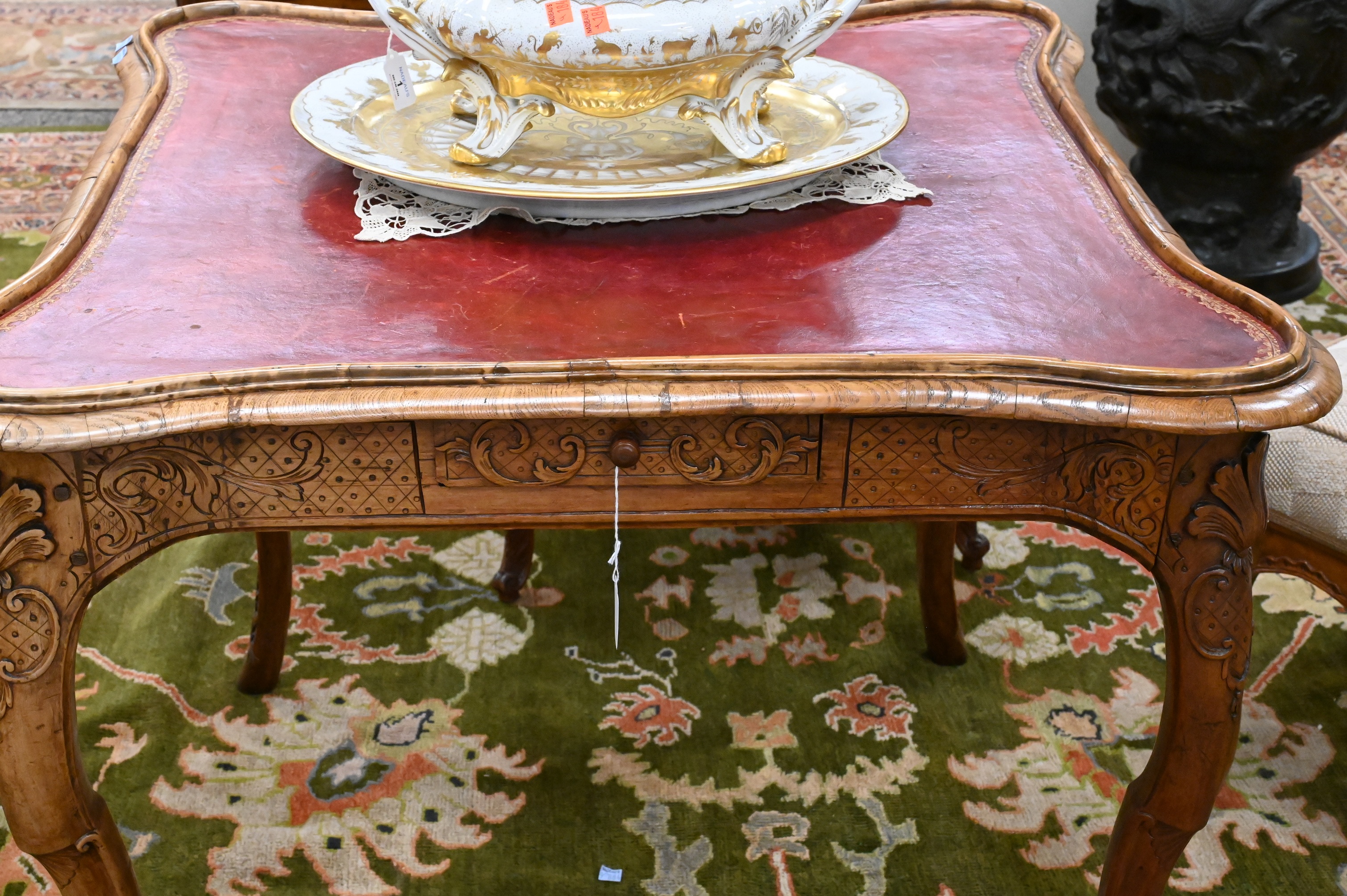 Lot 20: Louis XV Walnut Games Table with Tooled Leather Top