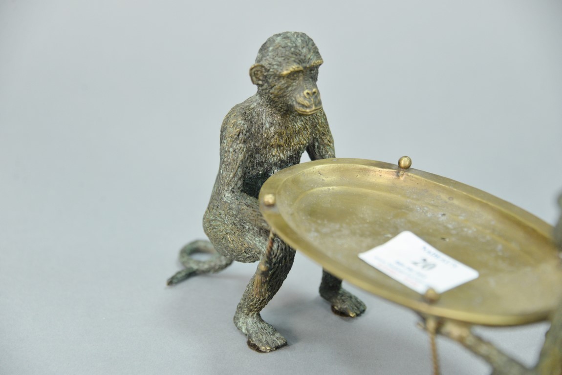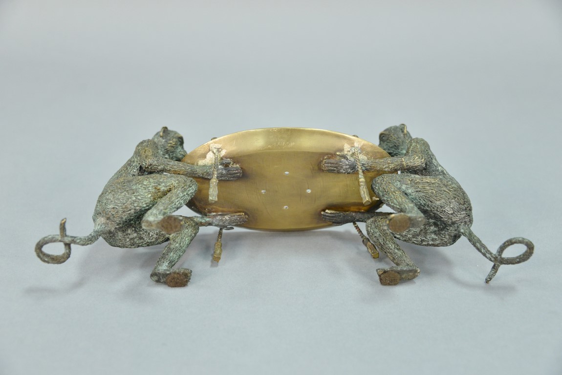 Lot 20: Maitland Smith double bronze monkey soap dish with two monkeys holding a brass tray. ht. 5in., lg. 12in.