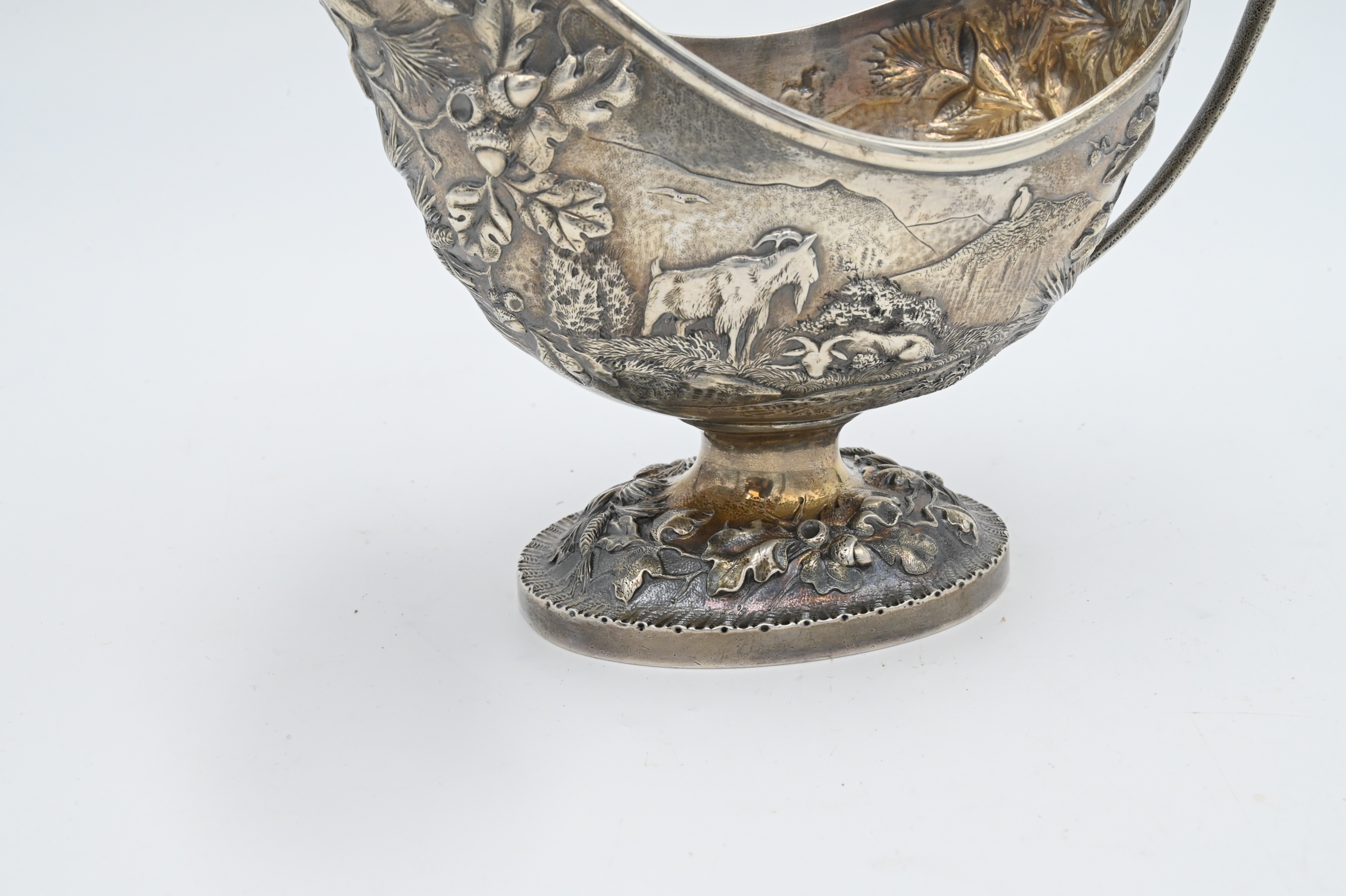 Having repousse body of pastoral scene and animals