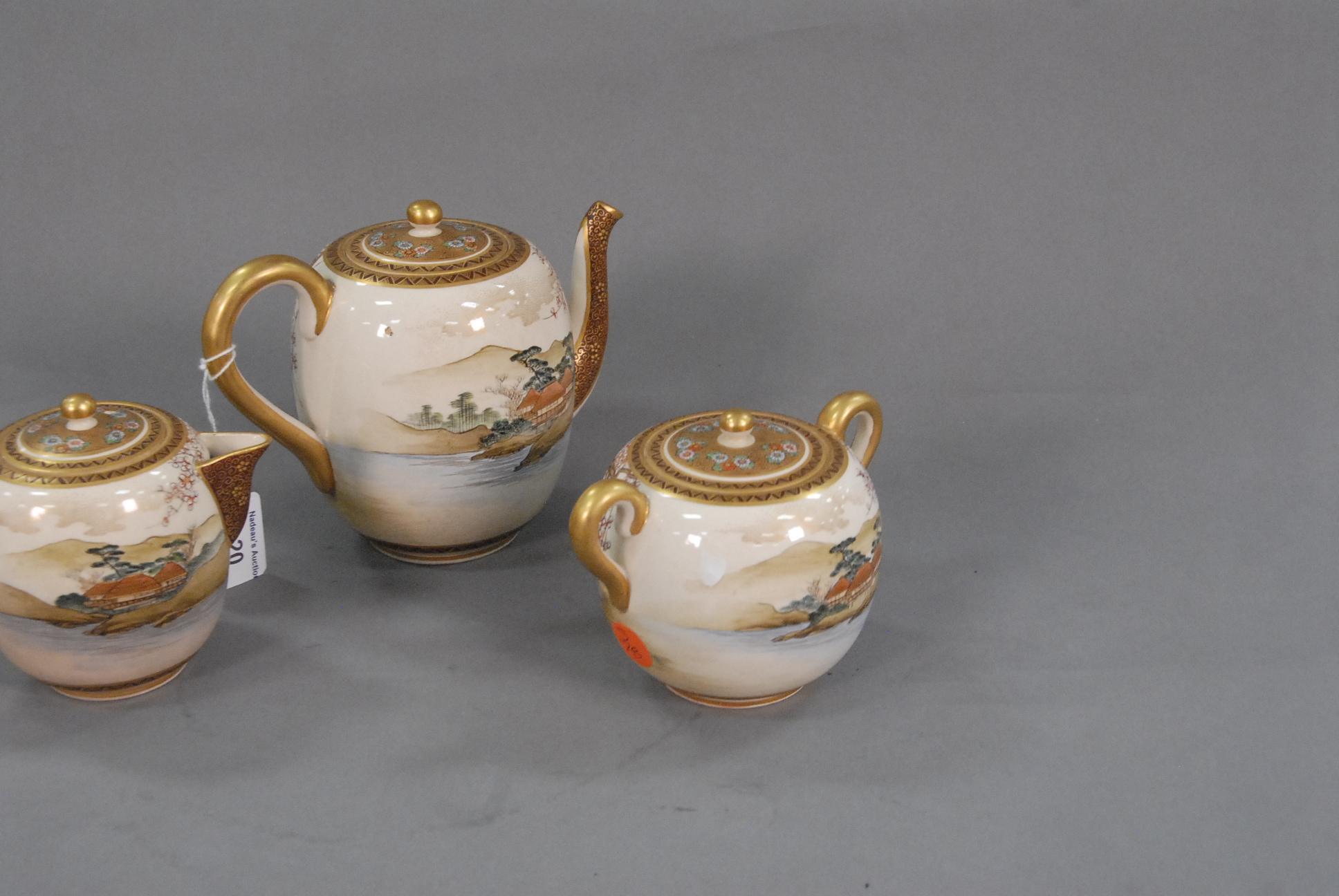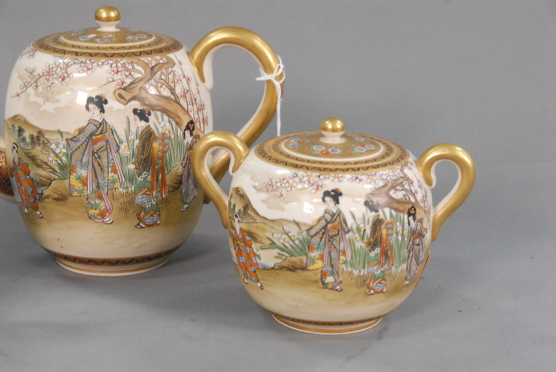 Lot 20: Satsuma tea set comprising of a teapot, sugar,