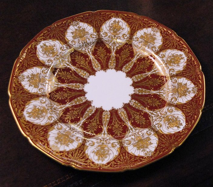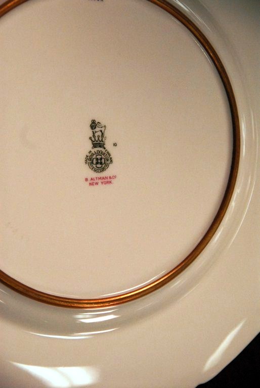 Set of eight Royal Doulton dinner plates marked B. Altman NY with high relief gold decoration, dia. 10 3/4in. Provenance: Estate of Judy Gengras McDonough of West Hartford, CT.