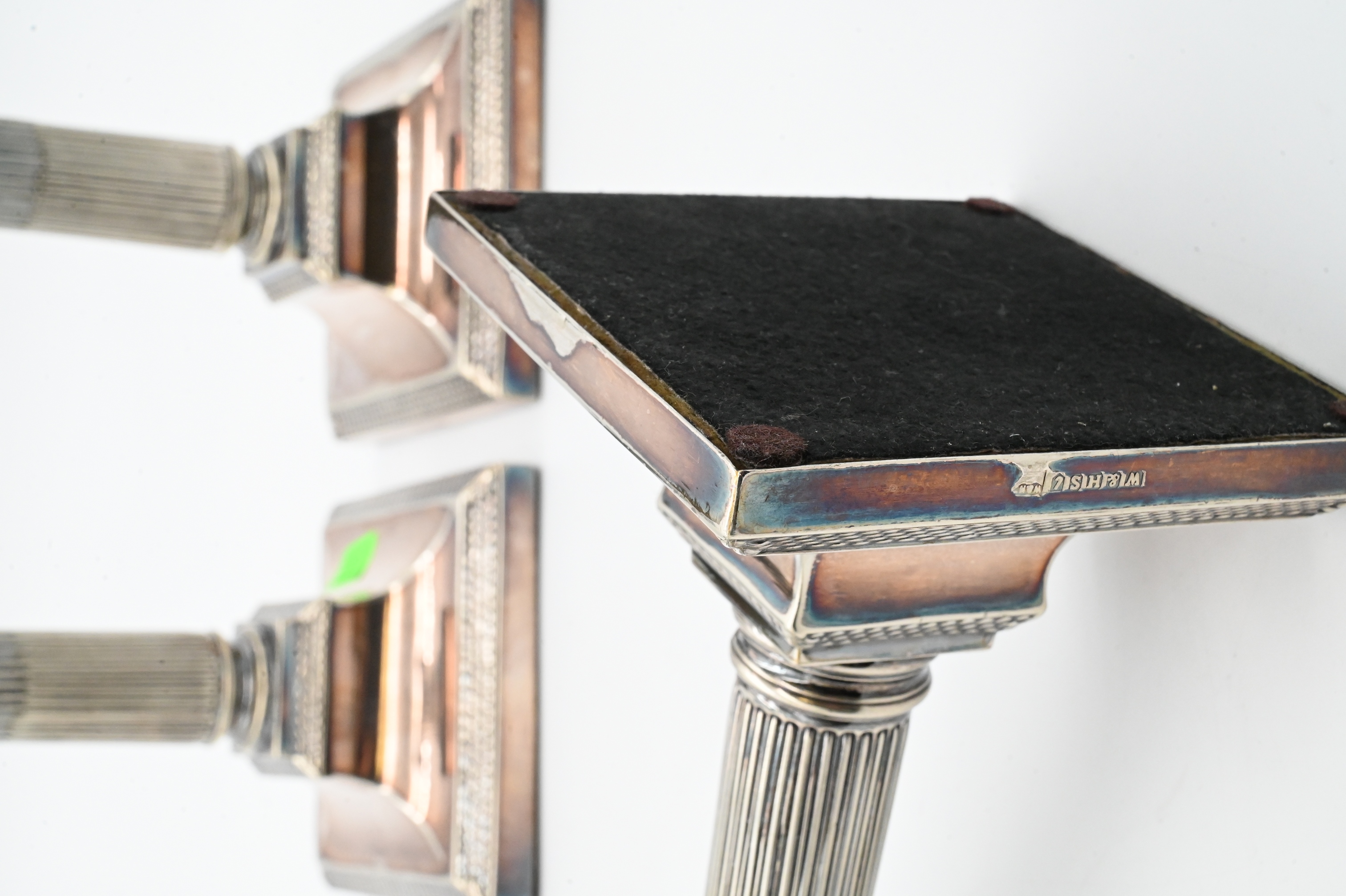 of reeded column form surmounted by corinthian capital, marks to bottom