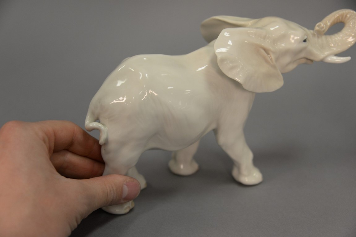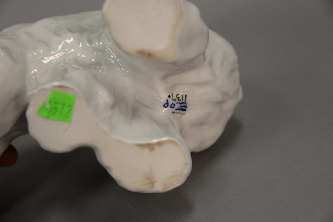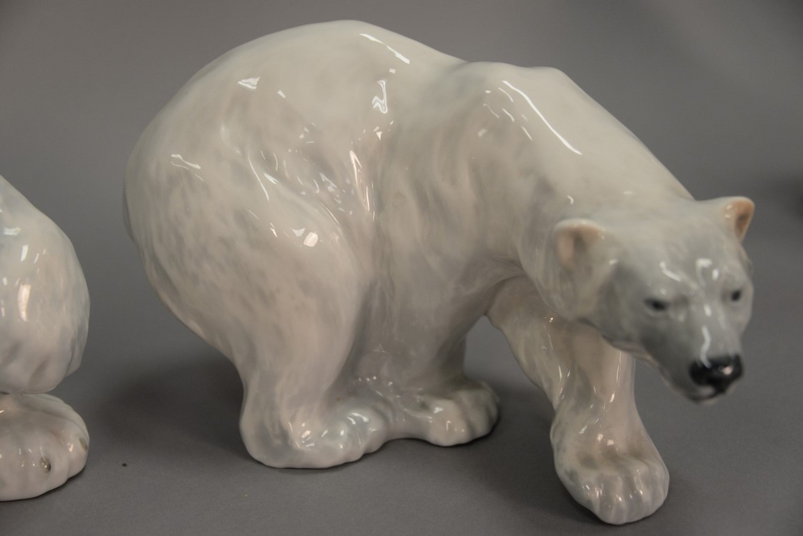Lot 20: Three Royal Copenhagen animals including polar bear roaring, ht. 13 in. polar bear walking #137, ht. 6 in., lg. 10 in. and an elep…