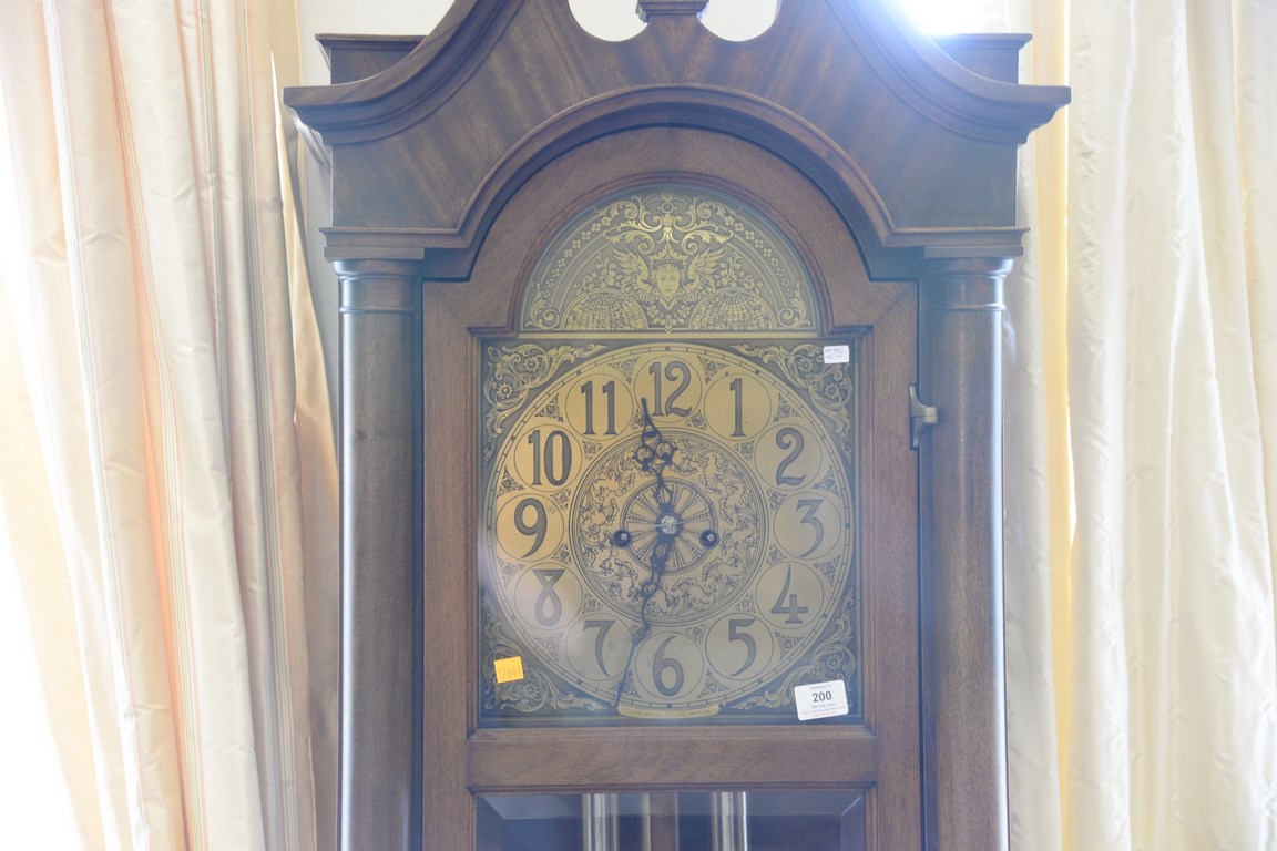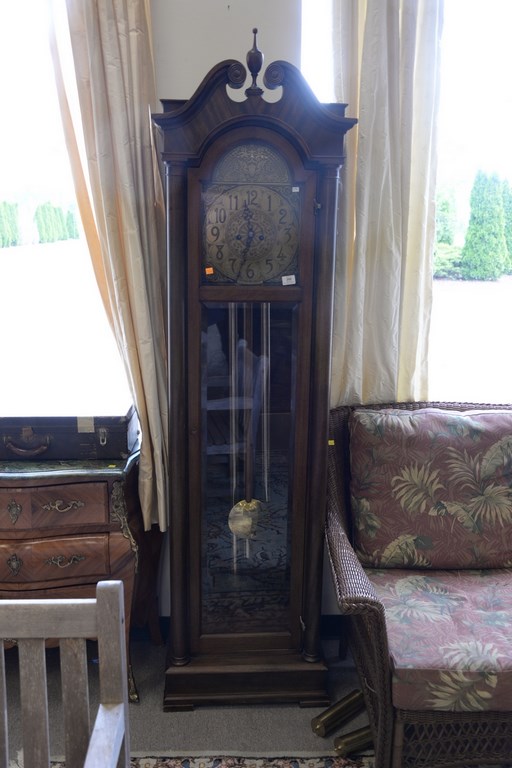 Colonial mahogany tall clock, three tube. ht. 82 in.
