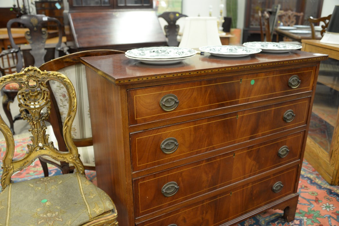 Federal style mahogany four drawer chest, ht. 35 in. wd. 38 in.