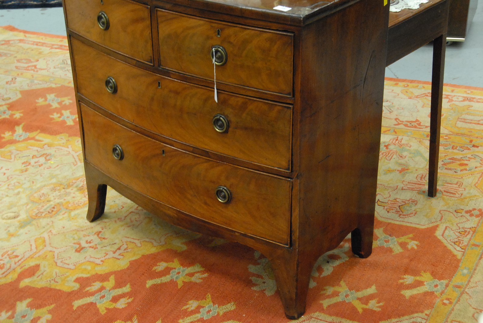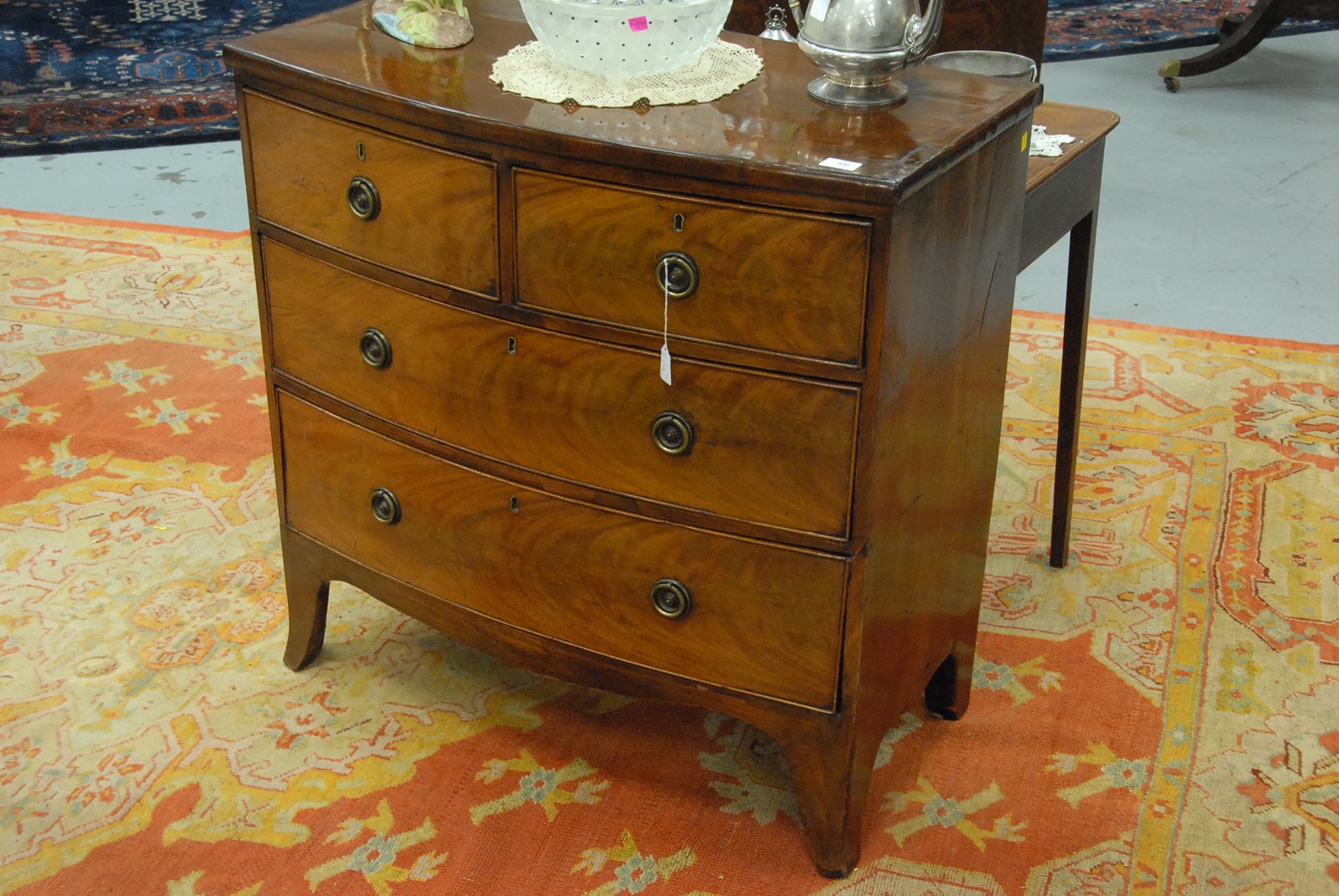 Lot 200: George IV mahogany bowed front chest, two over two drawers on French feet, circa 1800. ht. 35 in. wd. 34 in.