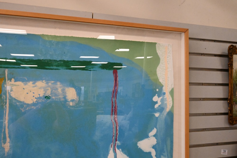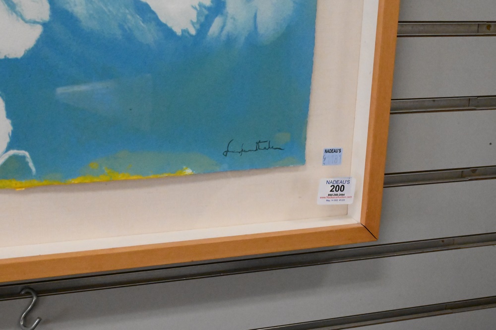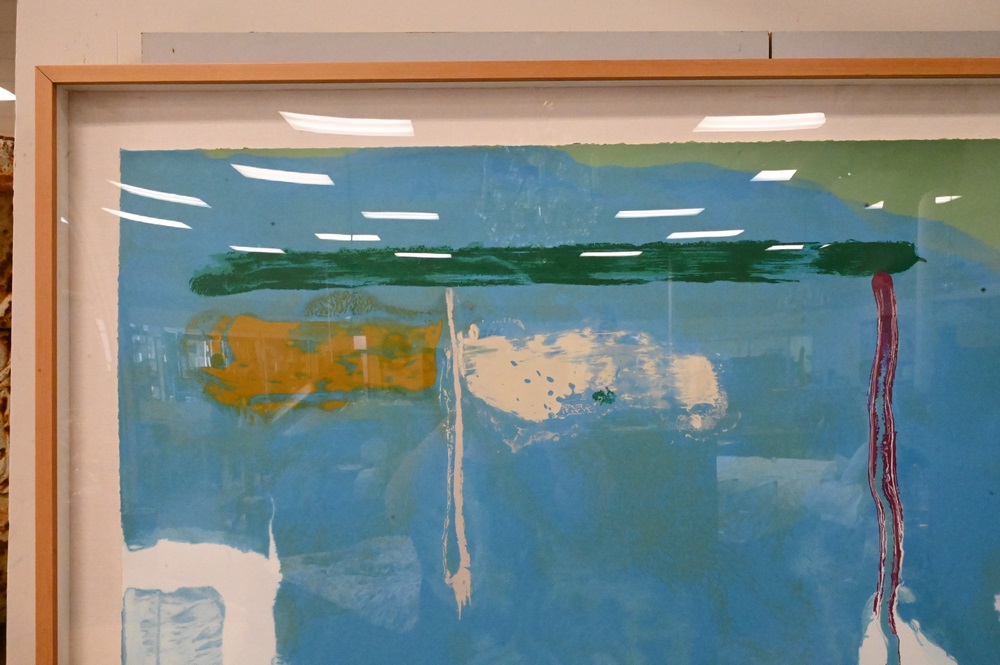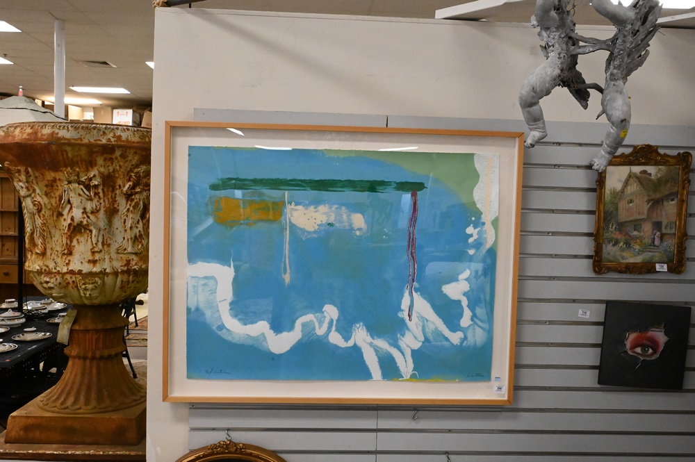 Lot 200: Helen Frankenthaler (1928 – 2011), “Skywriting”, screen print in color, pencil numbered lower left 81/110, pencil signed, in contemporary frame, 30″ x 40″.