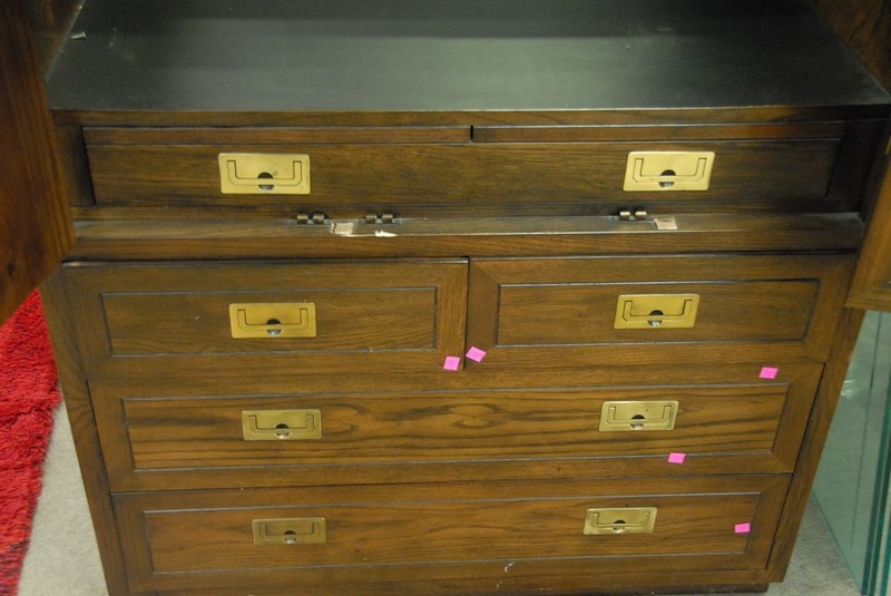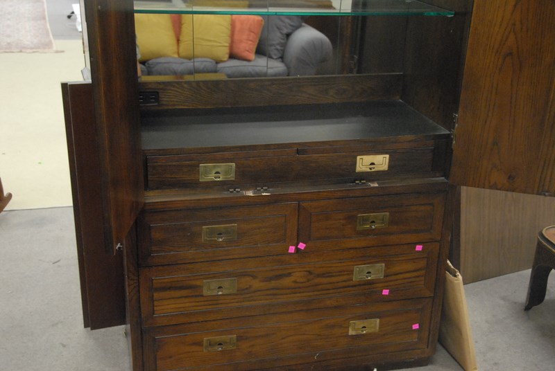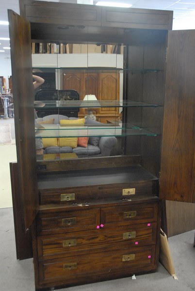 Large Henredon bar cabinet with glass shelves and mirror interior, ht. 82in. wd. 40in.