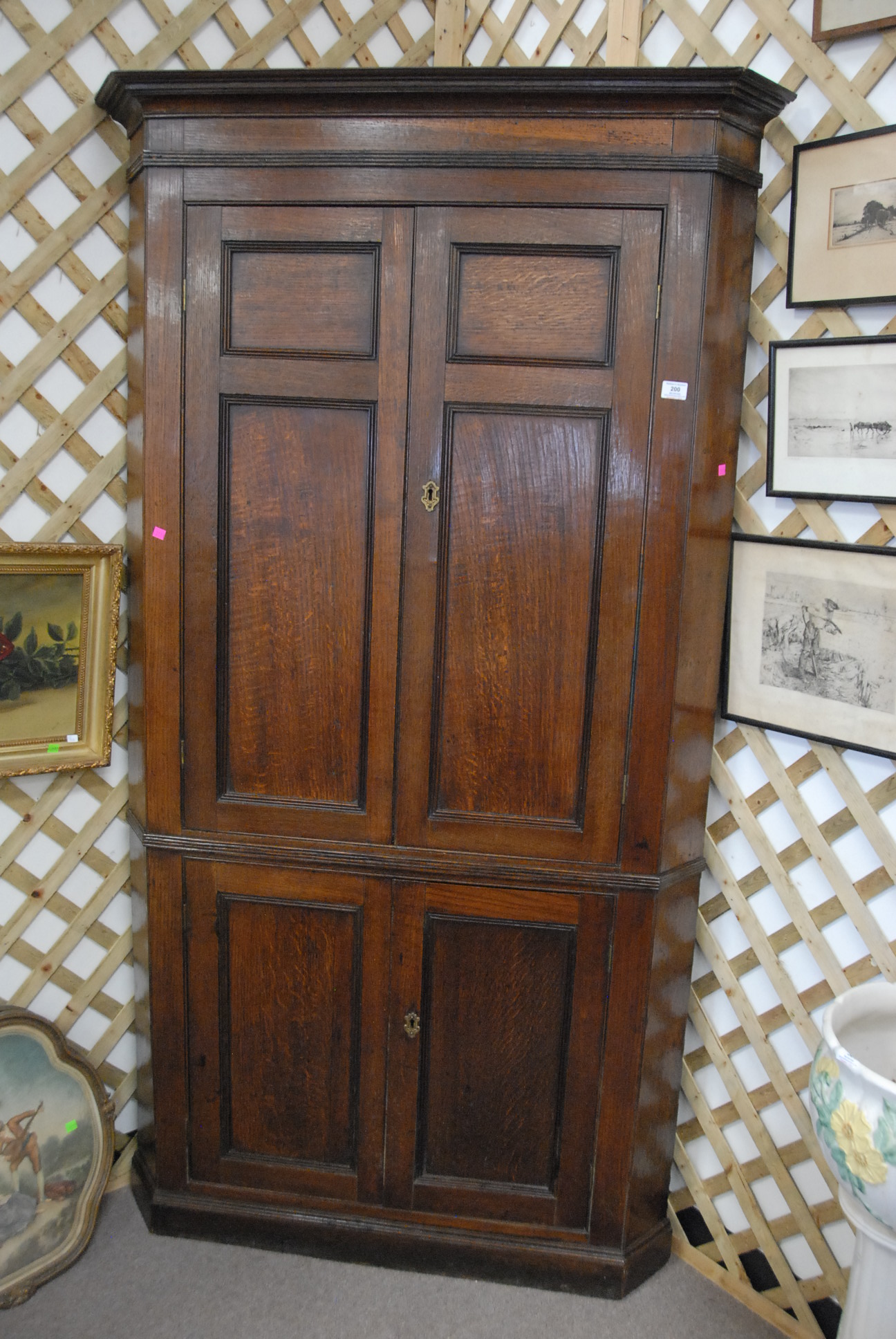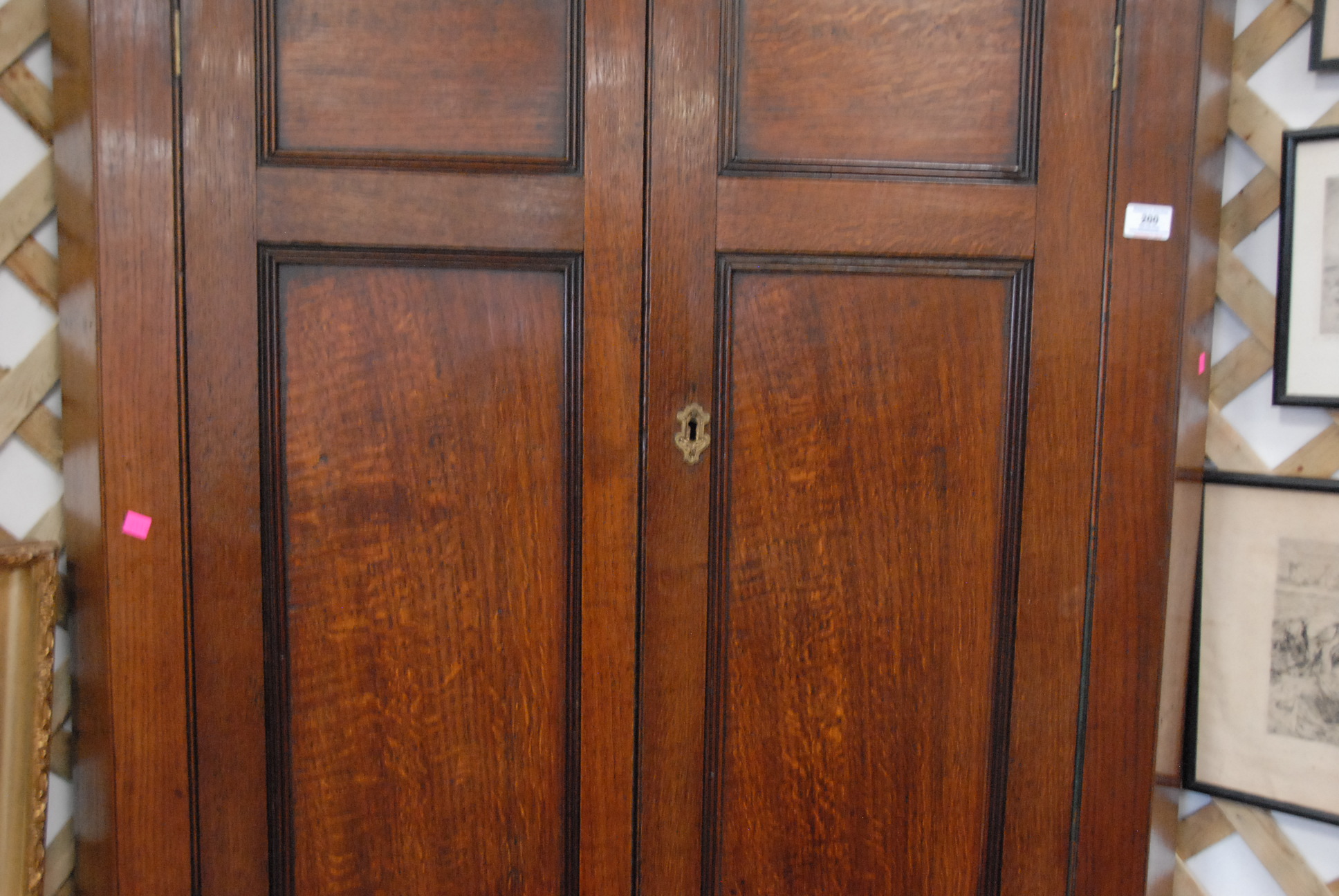 Oak corner cabinet with four paneled doors, ht. 82in. wd. 48in. dp. 28in.