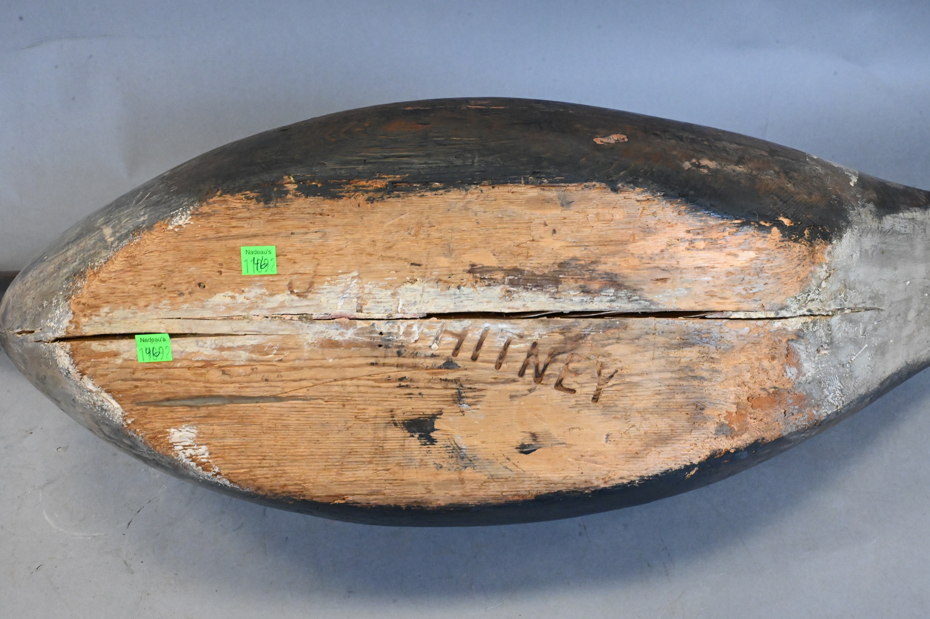 having solid two piece construction, body and head, some original paint, mostly working repaint, New England possibly New York