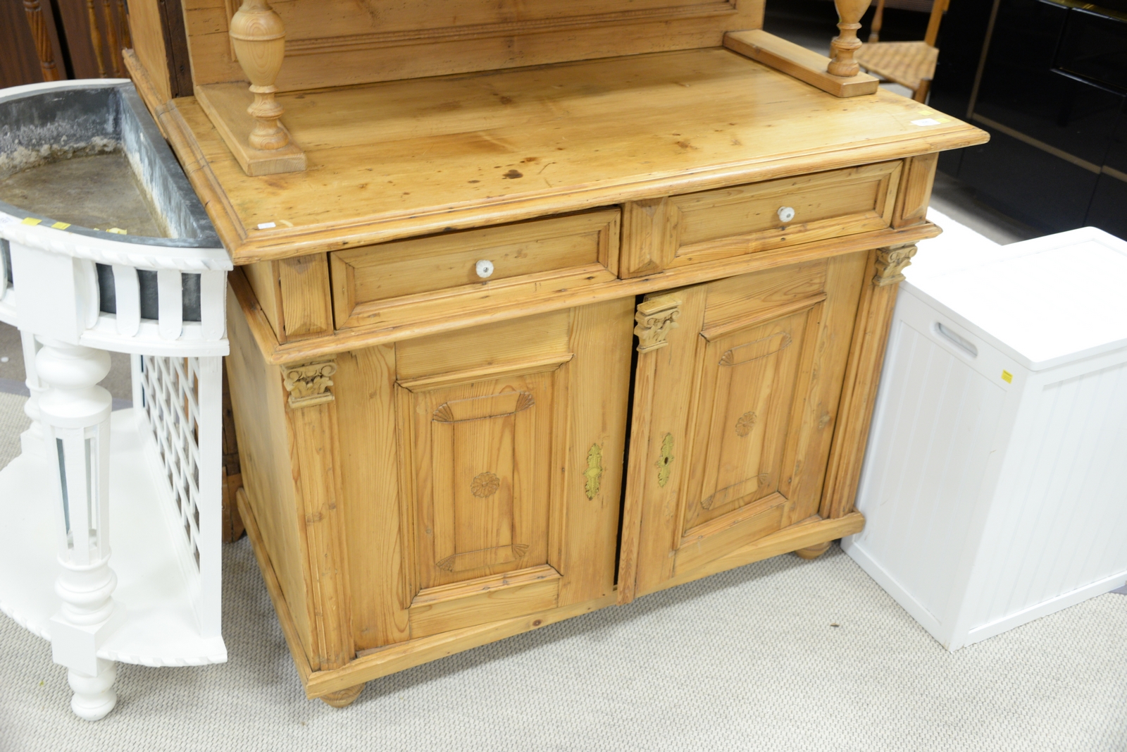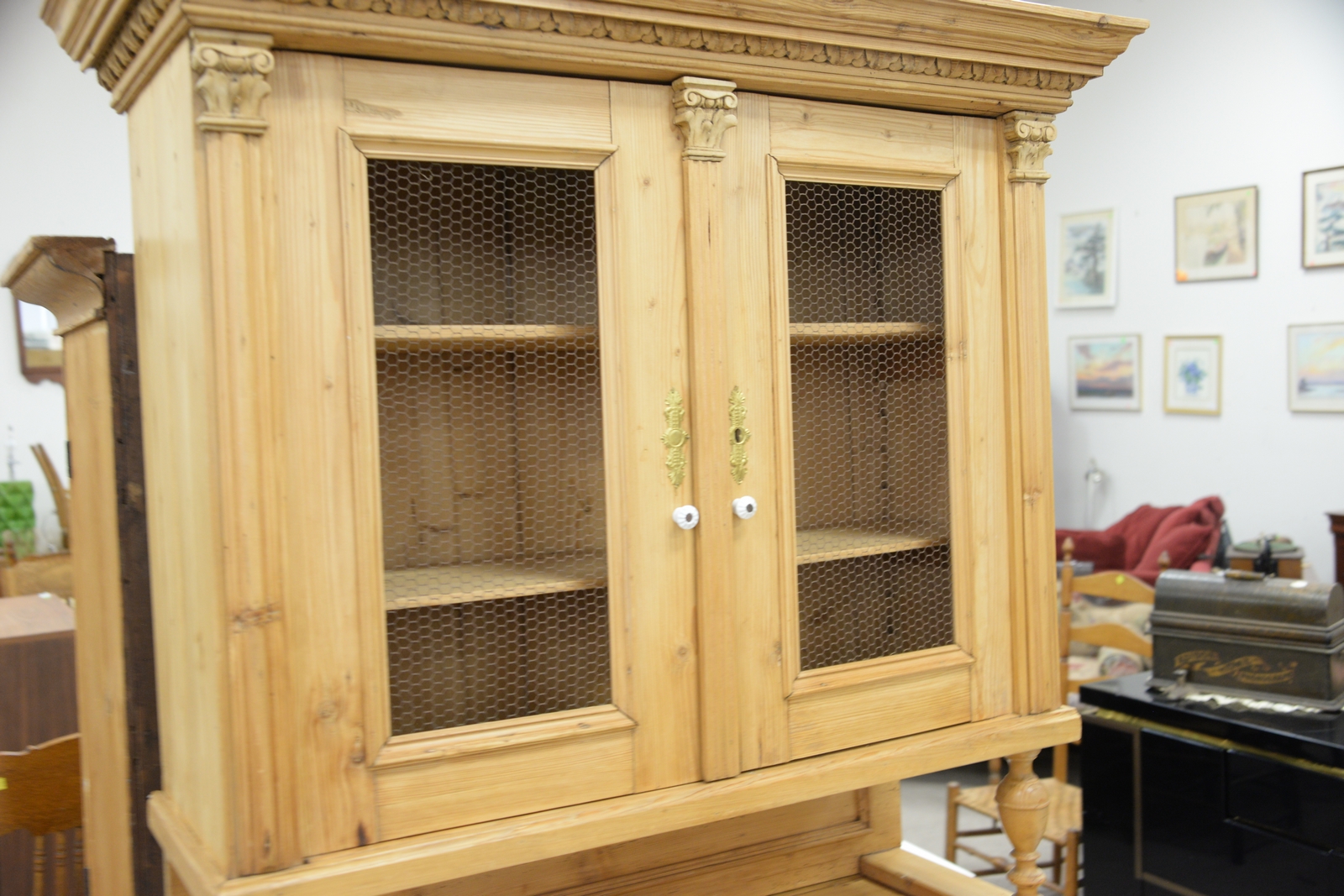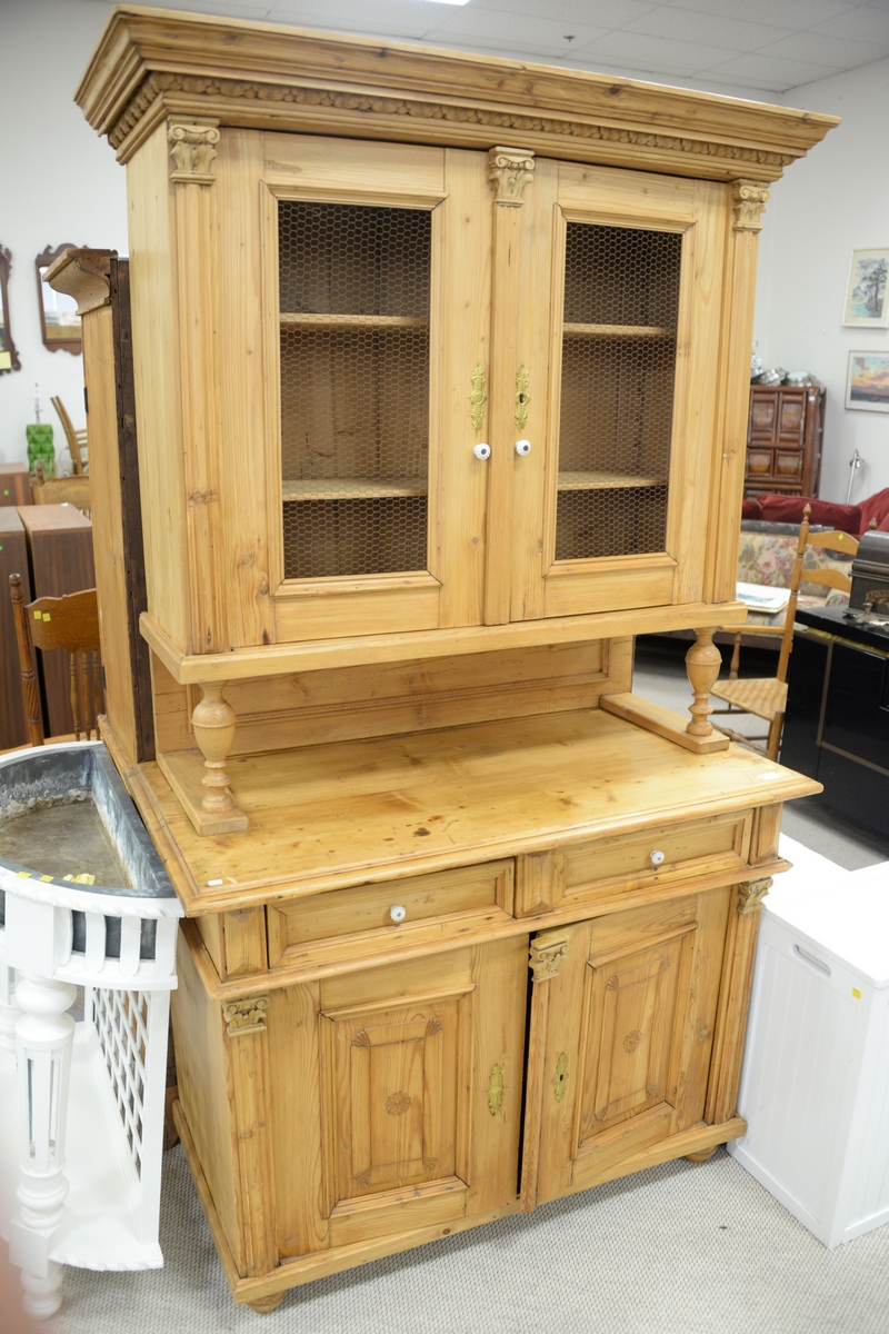 Pine hutch with grillwork doors. ht. 80in., wd. 45in., dp. 22in.