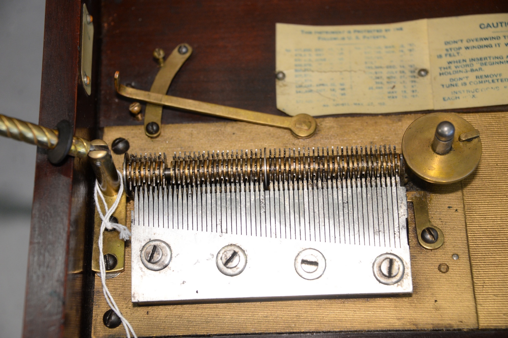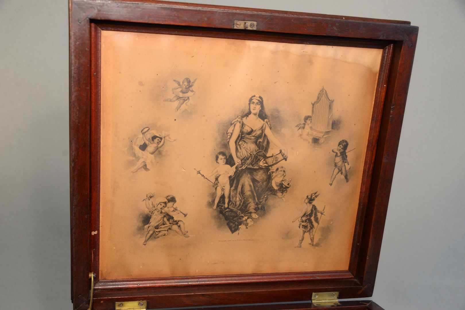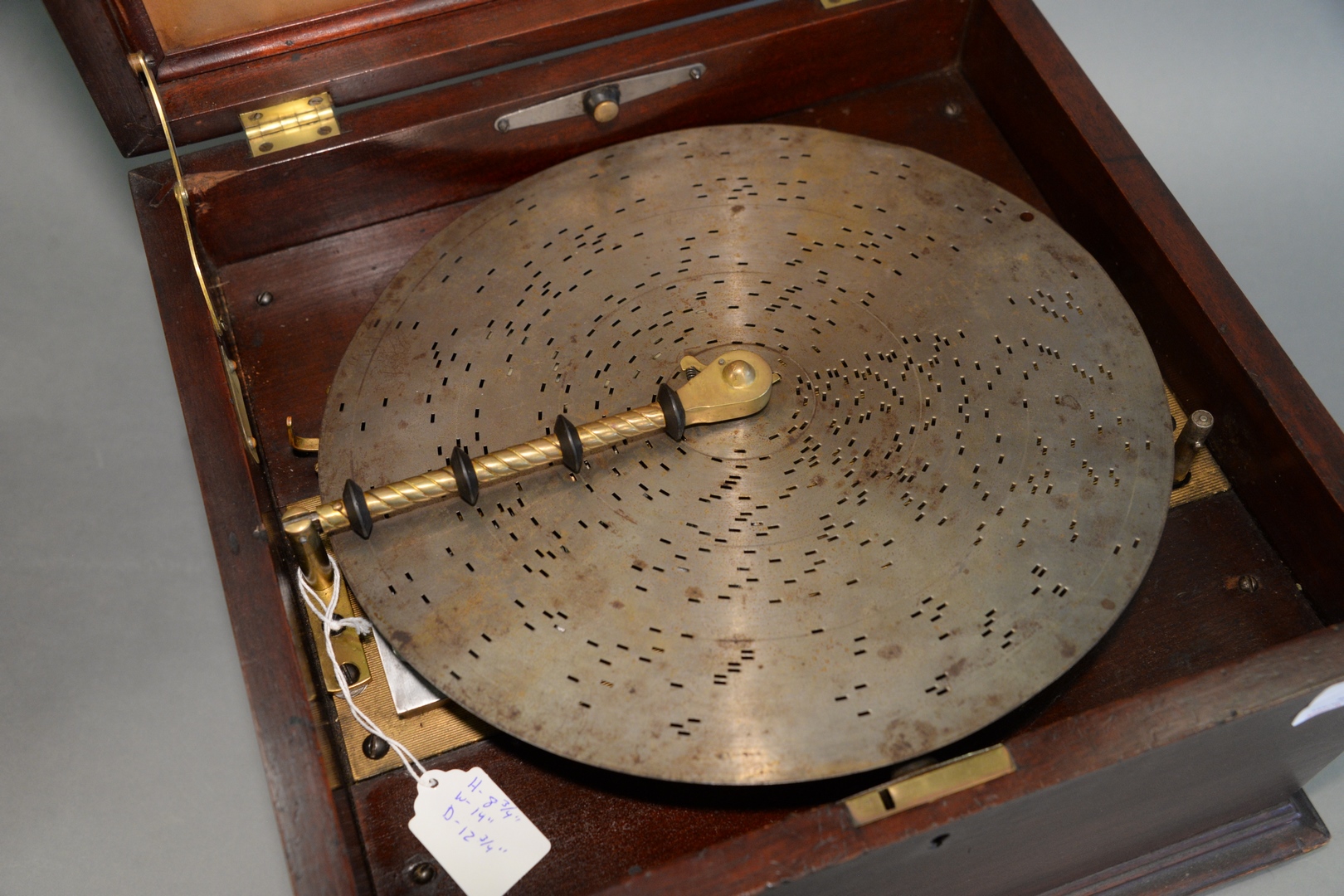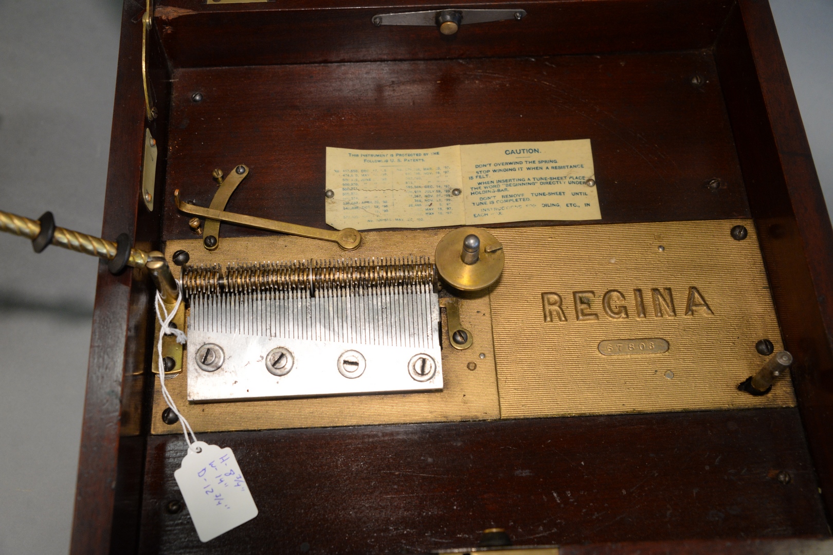 Lot 200: Regina Music Box 11 disc player, in mahogany case height 8 3/4 inches, width 14 inches, depth 12 3/4 inches