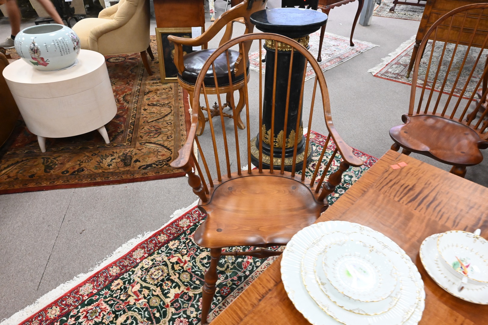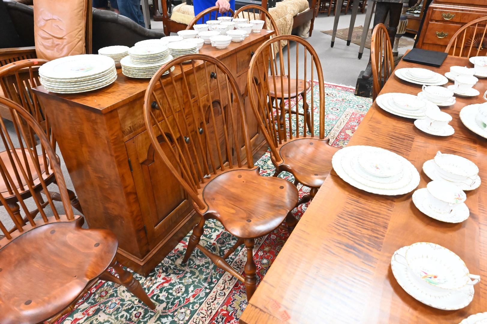Set of 12 D.R. Dimes Bow Back Windsor Dining Chairs, to include 2 arm, along with 10 side.