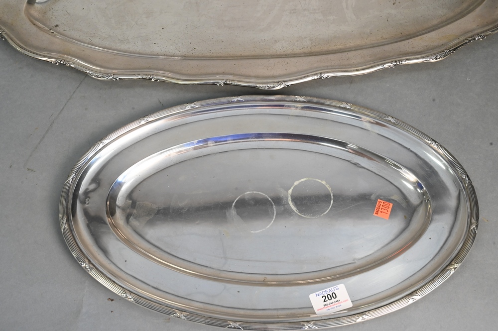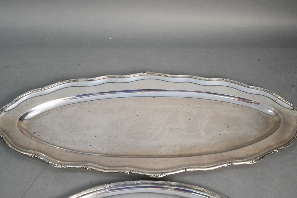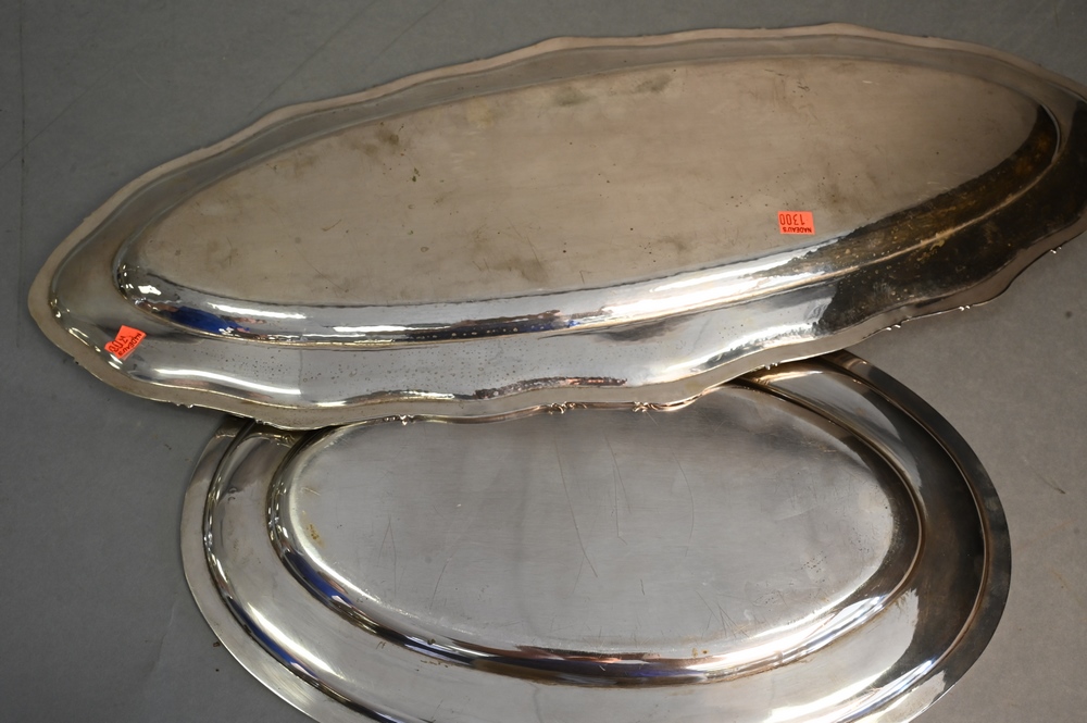 Two Continental Silver Platters, 11″ x 18″ and 12″ x 28″, 81 t.oz.