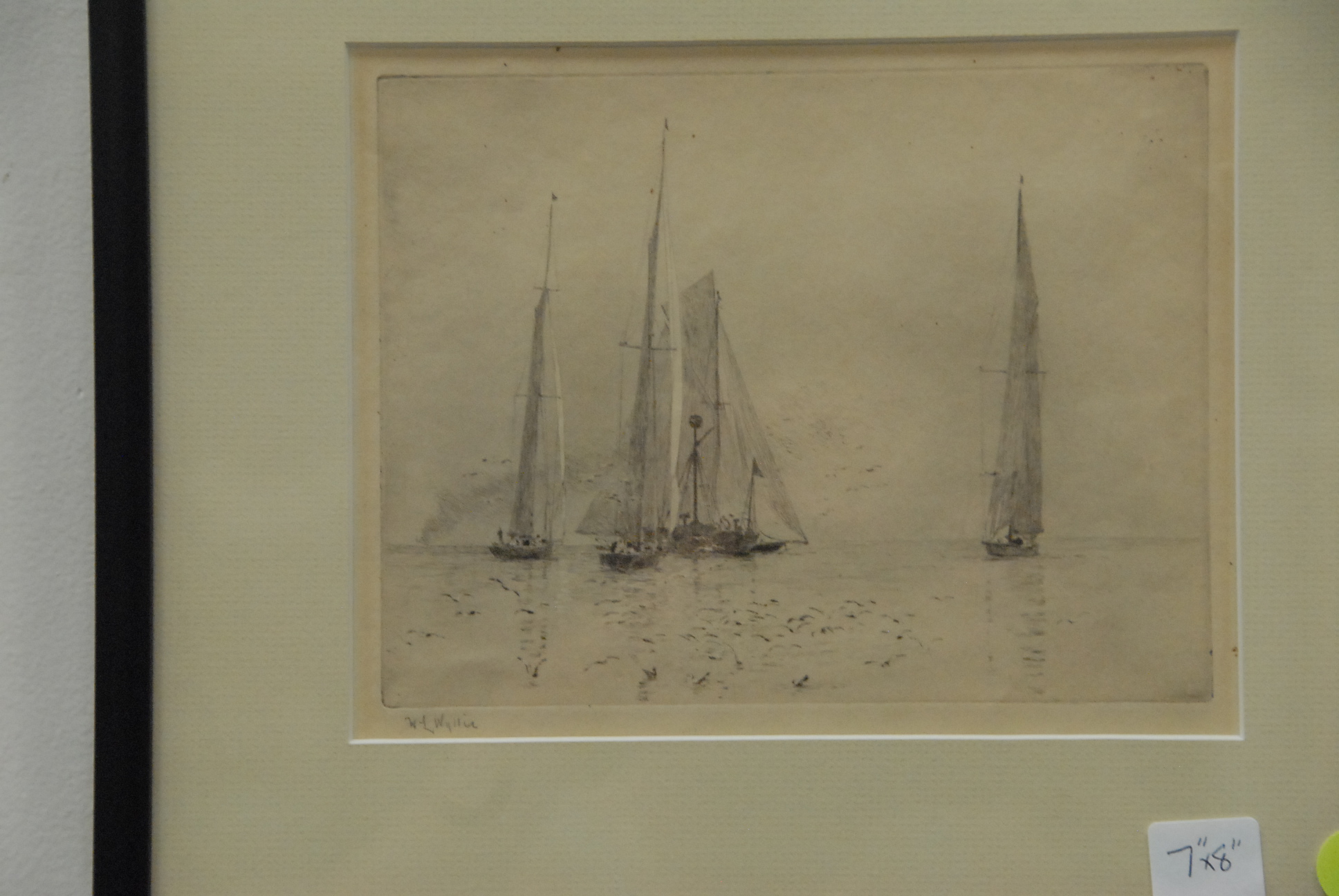 Two etchings signed W. L. Wyllie one of Royal Air Force Memorial, London and Rounding The Mark