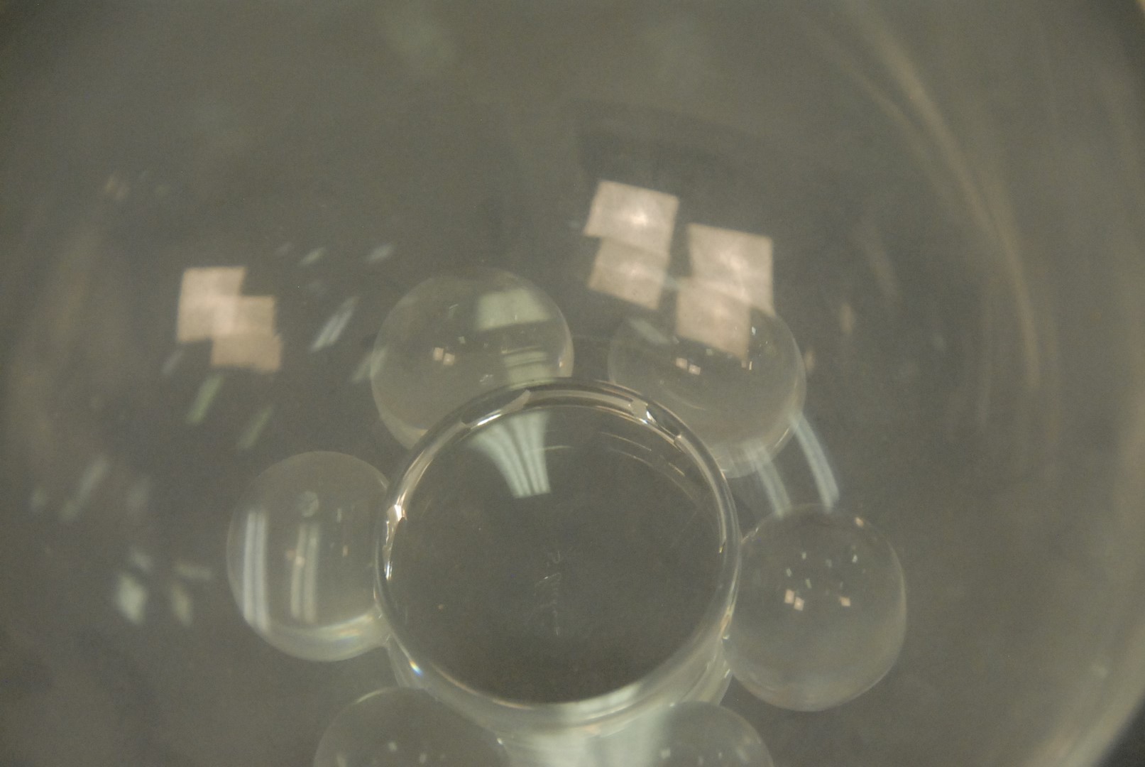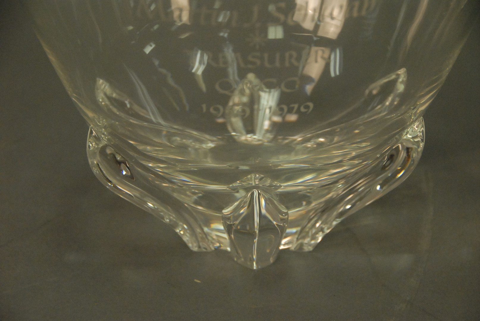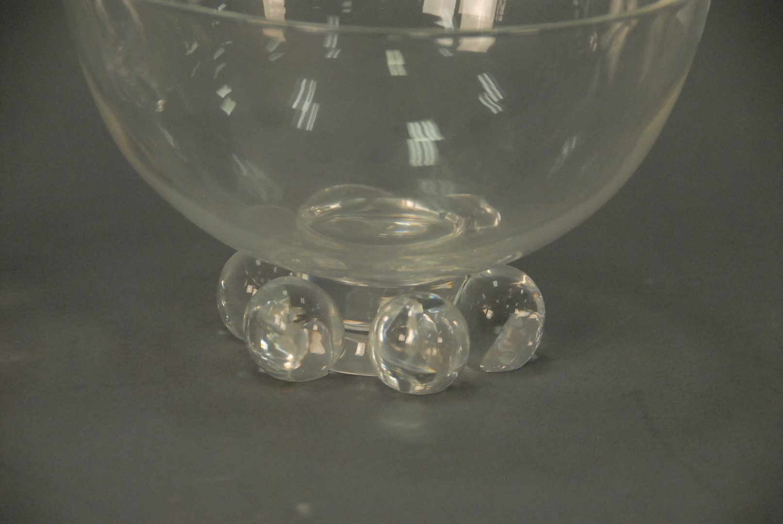 Two large Steuben crystal glass bowls, one with ball feet ht. 5 1/2 in. dia. 8 1/2 in. and the other given as a reward ht. 7 1/2 in.