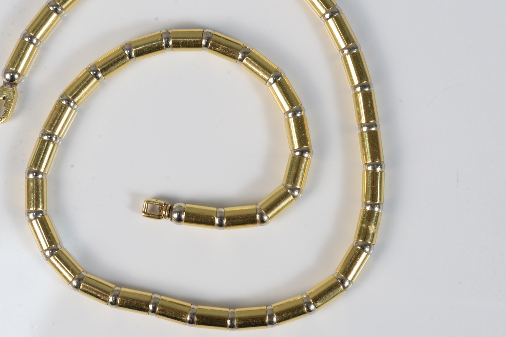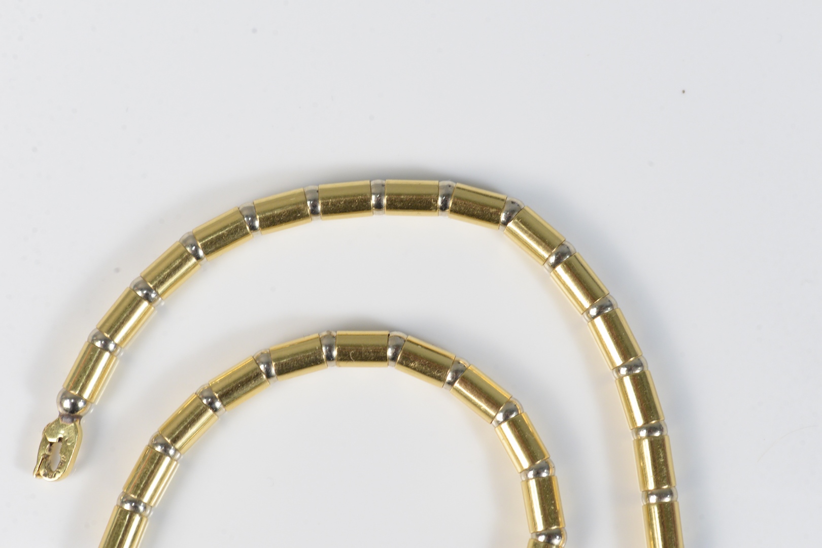 Lot 200A: 18 Karat Gold Flexible Necklace made up of 40 barrel form beads length 15 inches 38.7 grams