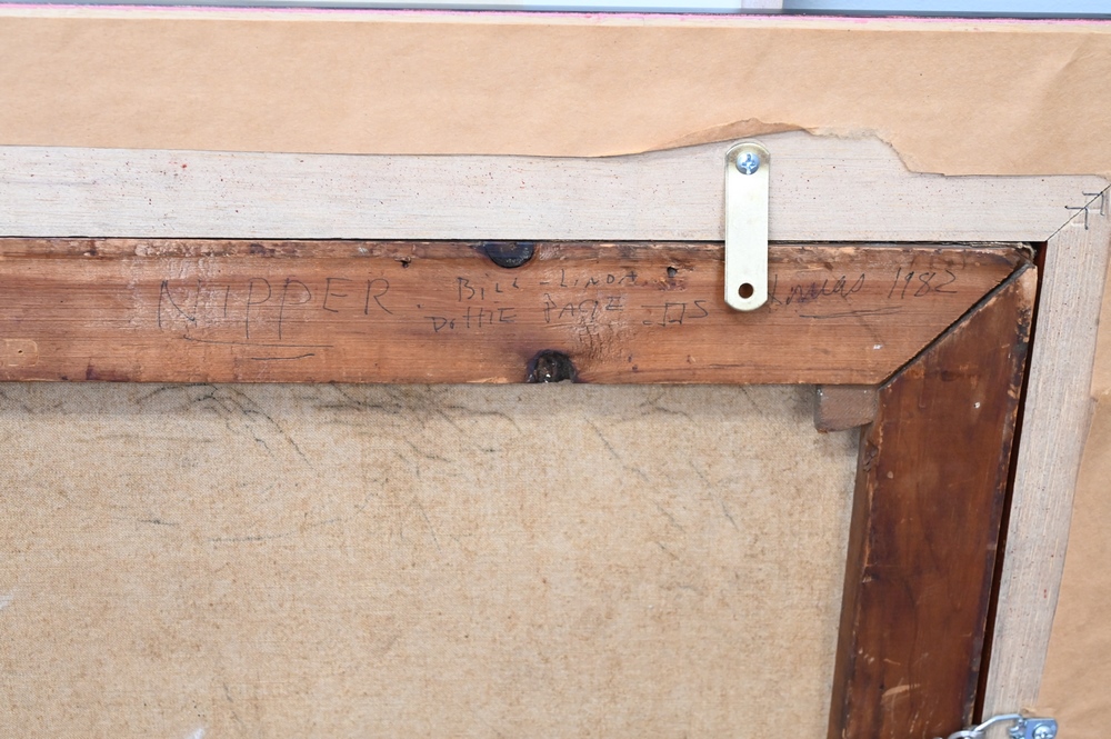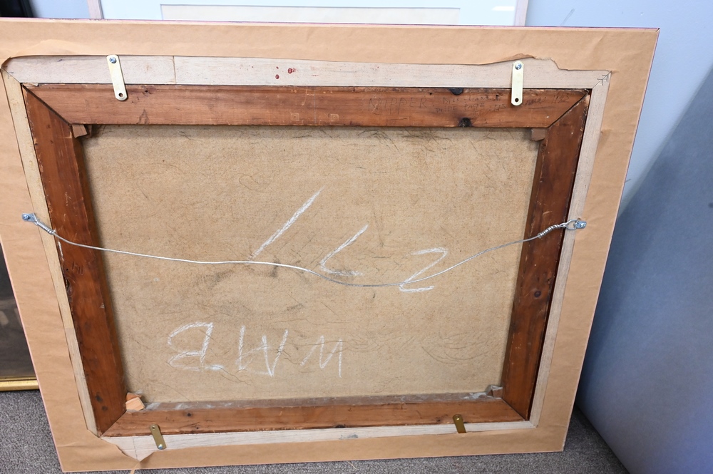 Lot 200A: After Francis James Barraud (1856 – 1924), “His Master’s Voice”, 192, lithograph on canvas, printed signature, original first printed version of the original oil on canvas, 20″ x 26″.