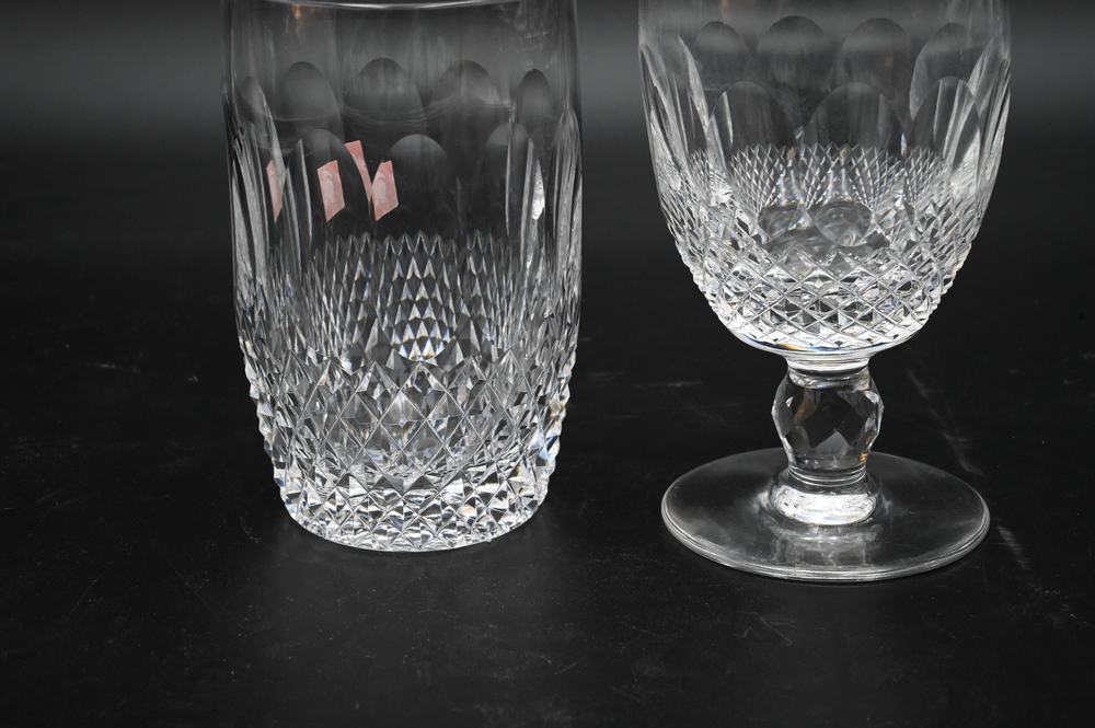 Lot 201: 31 Pieces of Waterford Crystal, Colleen pattern, to include 11 water cups, 3 tumblers, and 17 goblets, stemmed wine is signed, tumblers are not signed, height 5 inches, 5 1/4 inches, 3 1/2 inches.