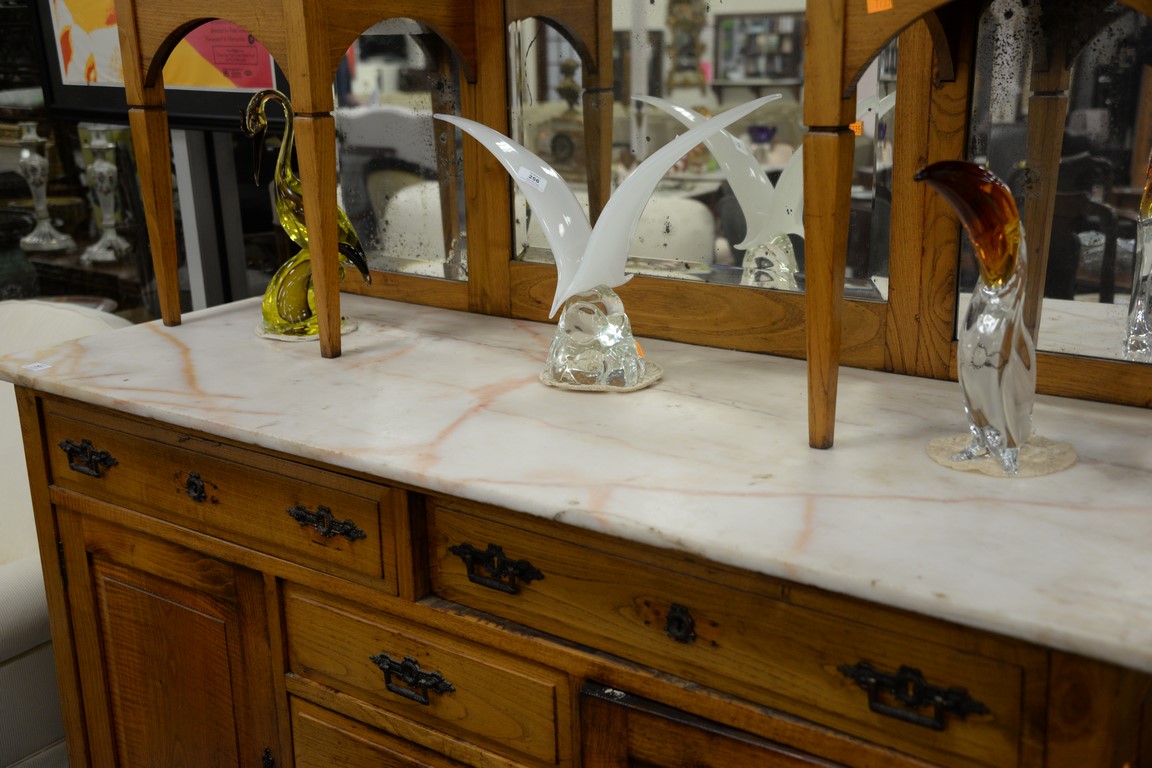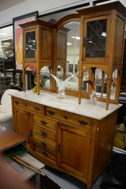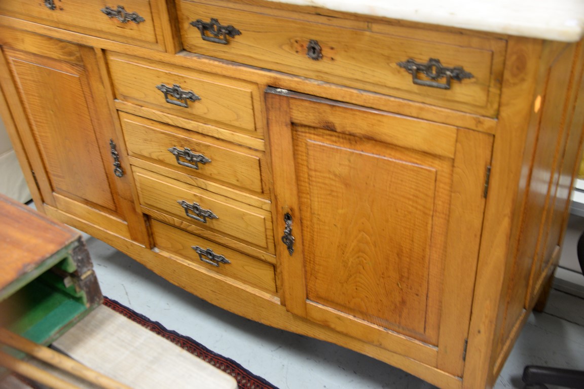 Continental marble top sideboard with cabinet top. ht. 42 in. wd. 62 in. dp. 26 in.