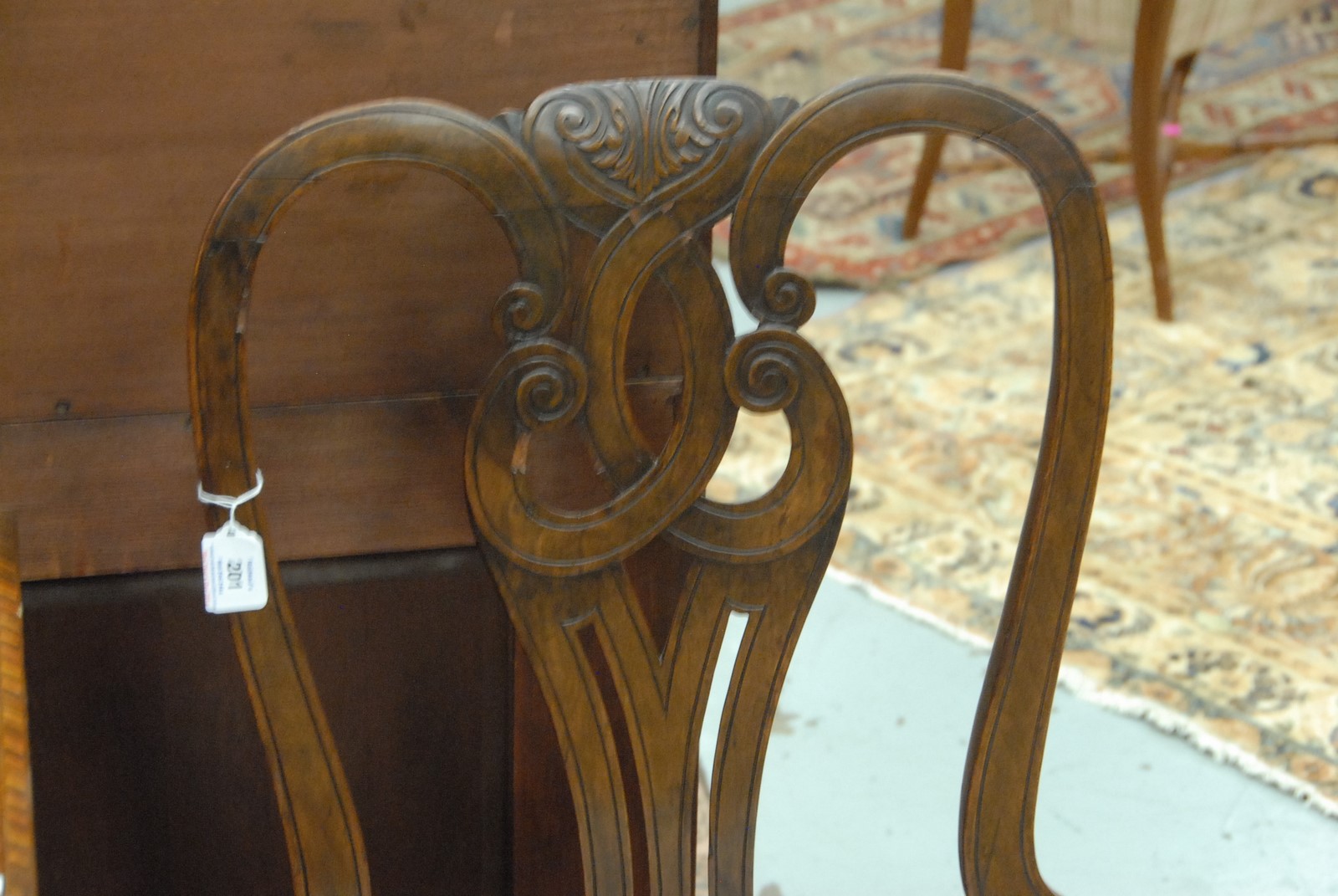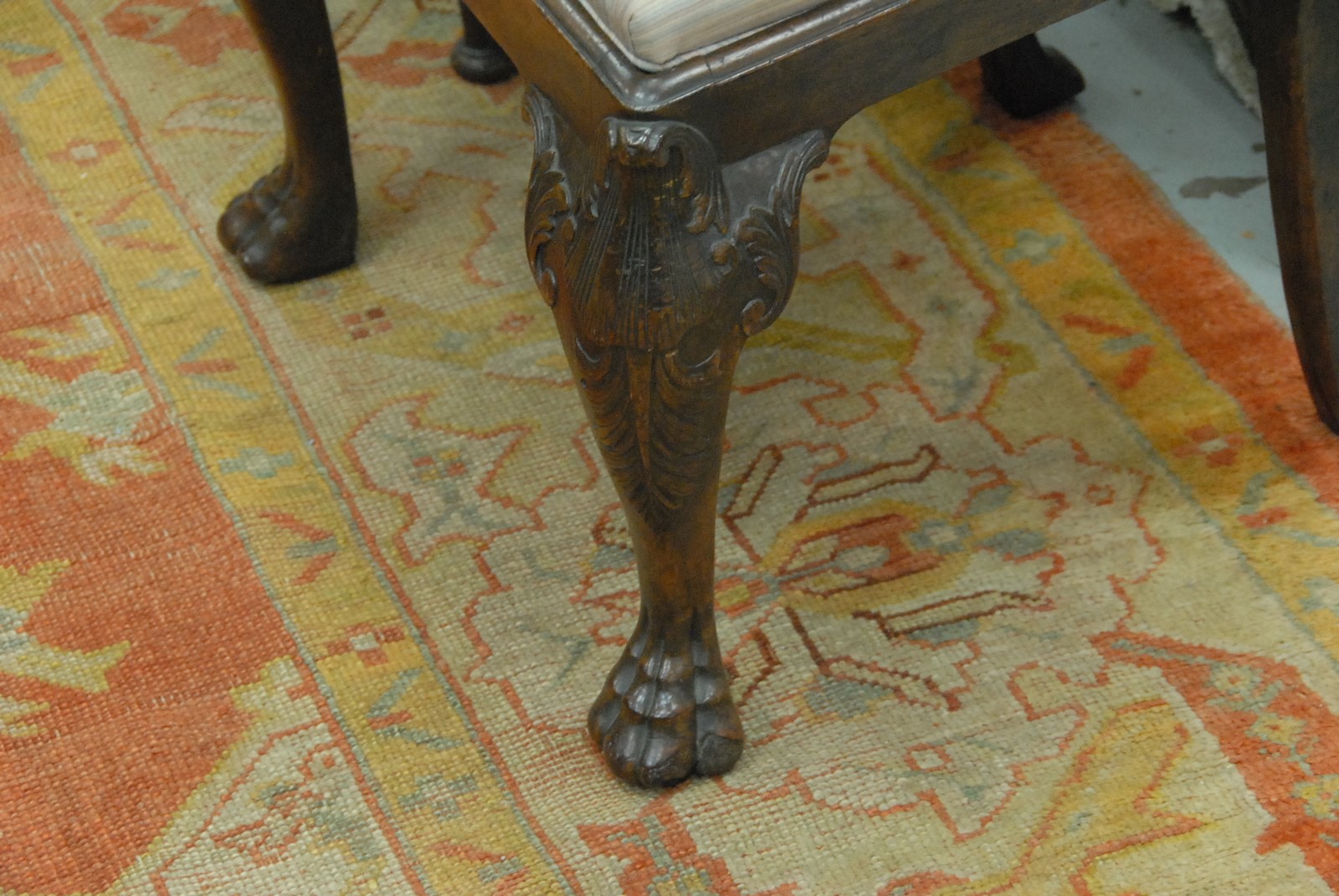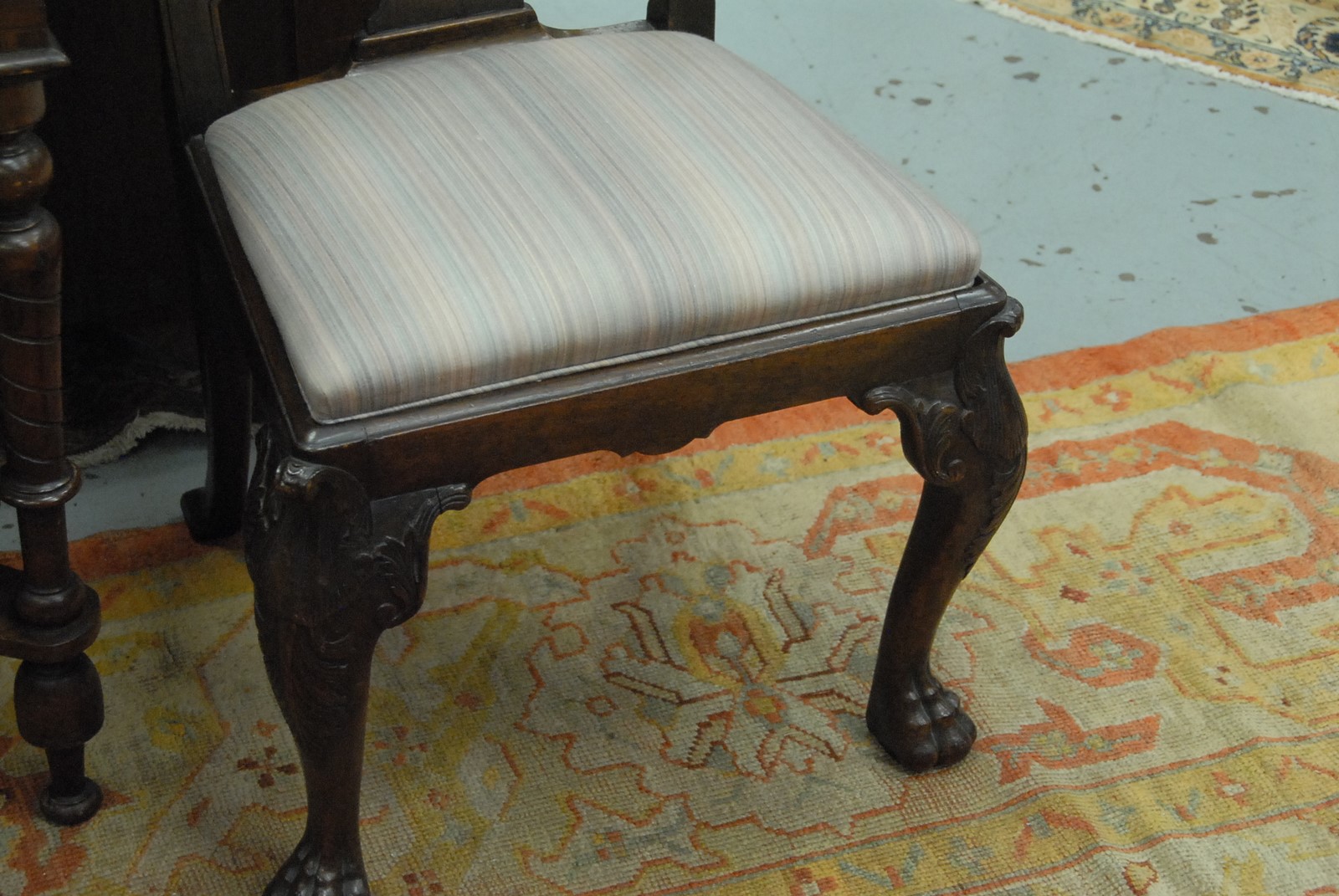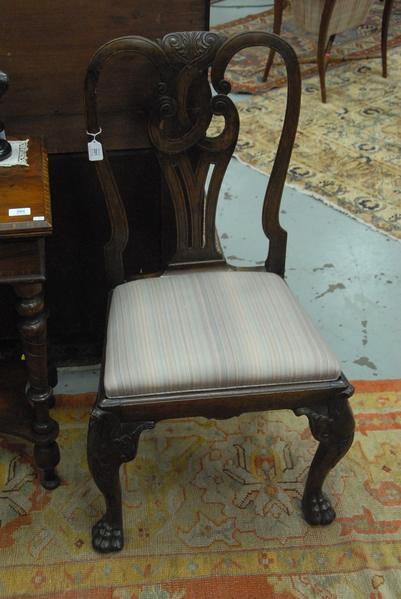 Lot 201: Continental side chair having pierced carved splat and upholstered slip seat on carved legs with large claw feet, 18th century. seat ht. 17 in.