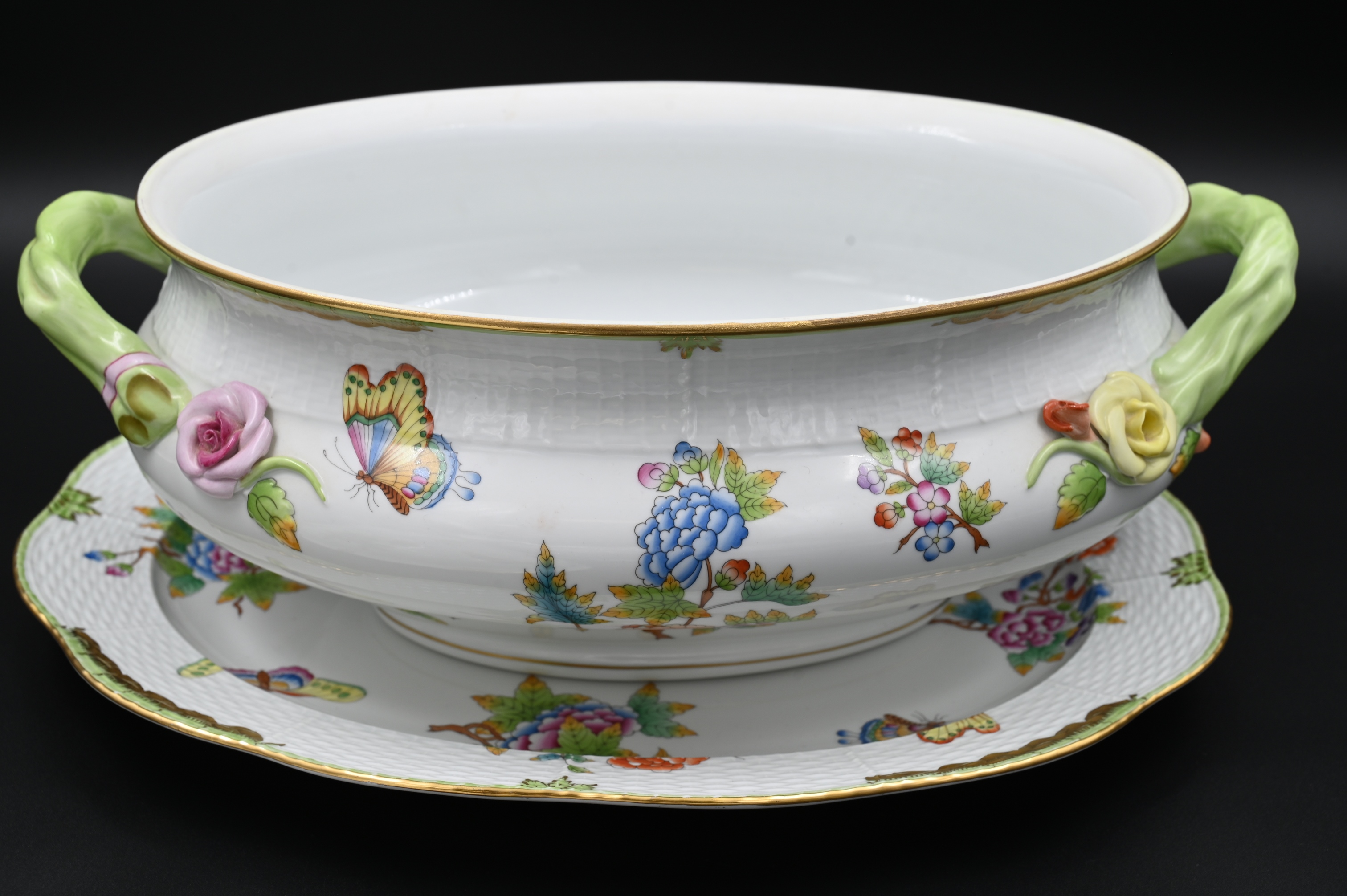 Herend Queen Victoria Porcelain Tureen and Underplate/Tray