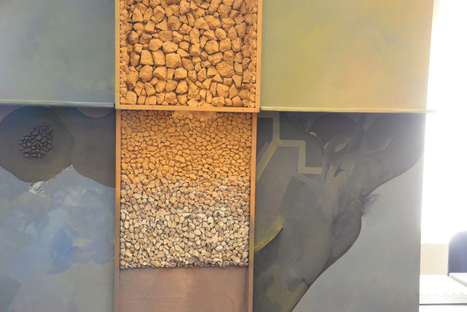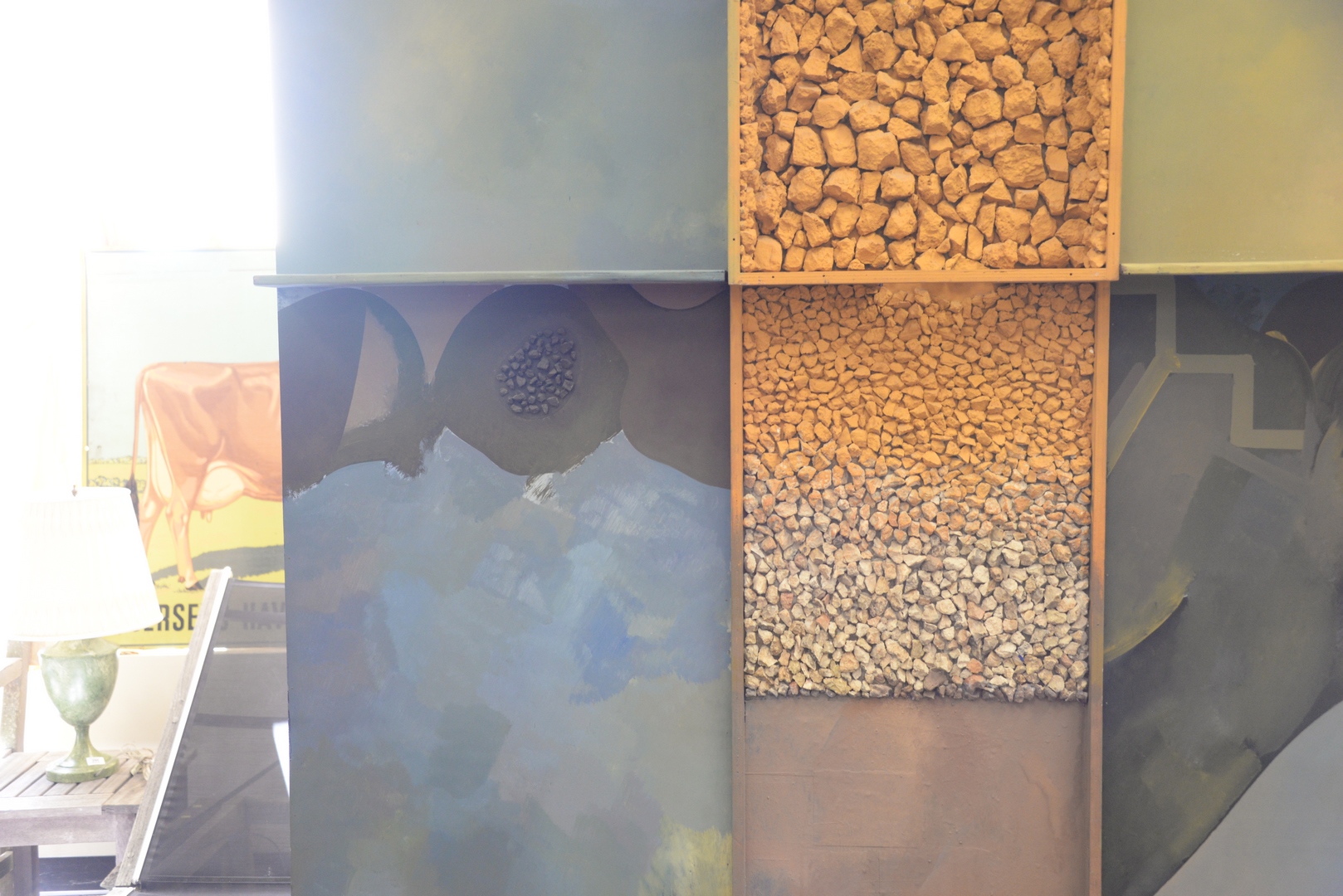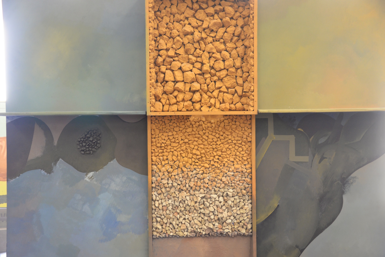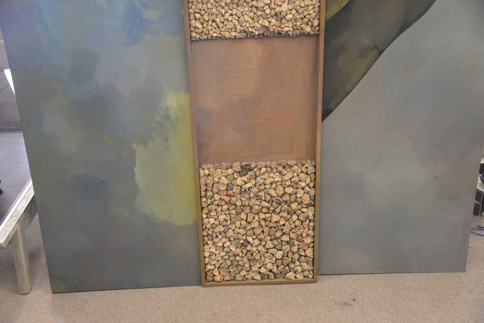 Josep Guinovart (Spanish, 1927-2007), Marga, 1982 – 83, mixed media on wood panel, in three parts; signed, titled, dated, and inscribed on the reverse, overall 82 3/4″ x 67″.