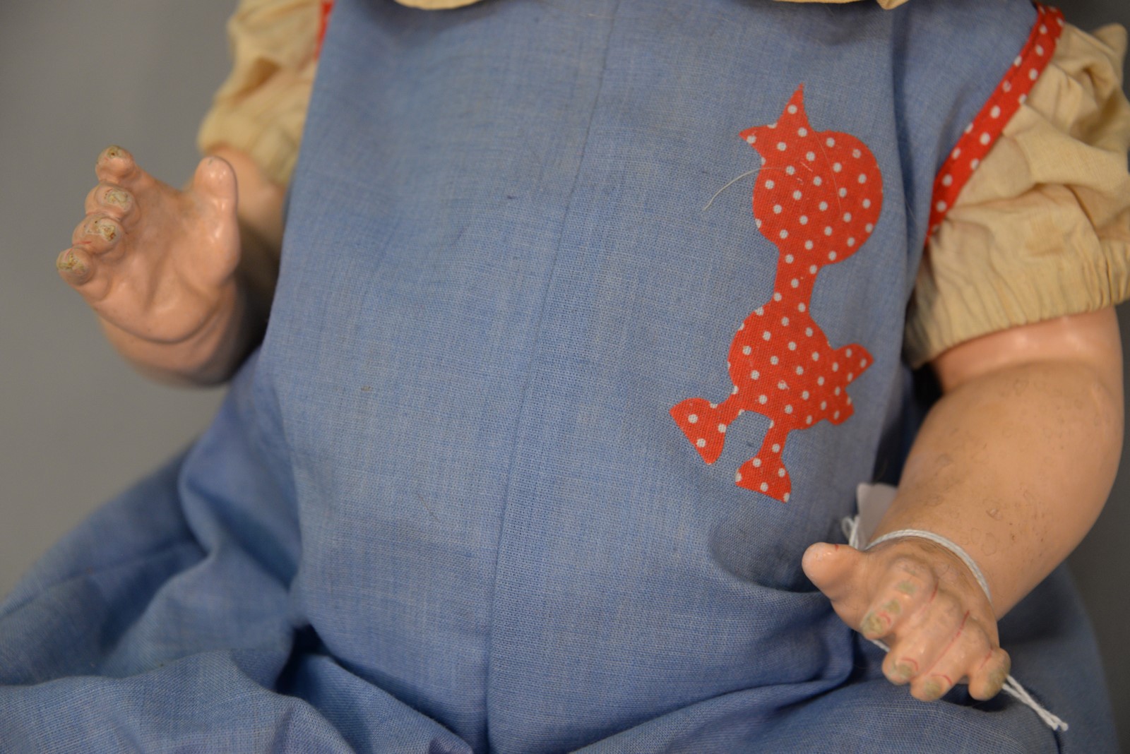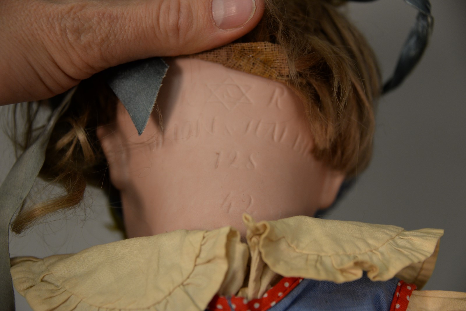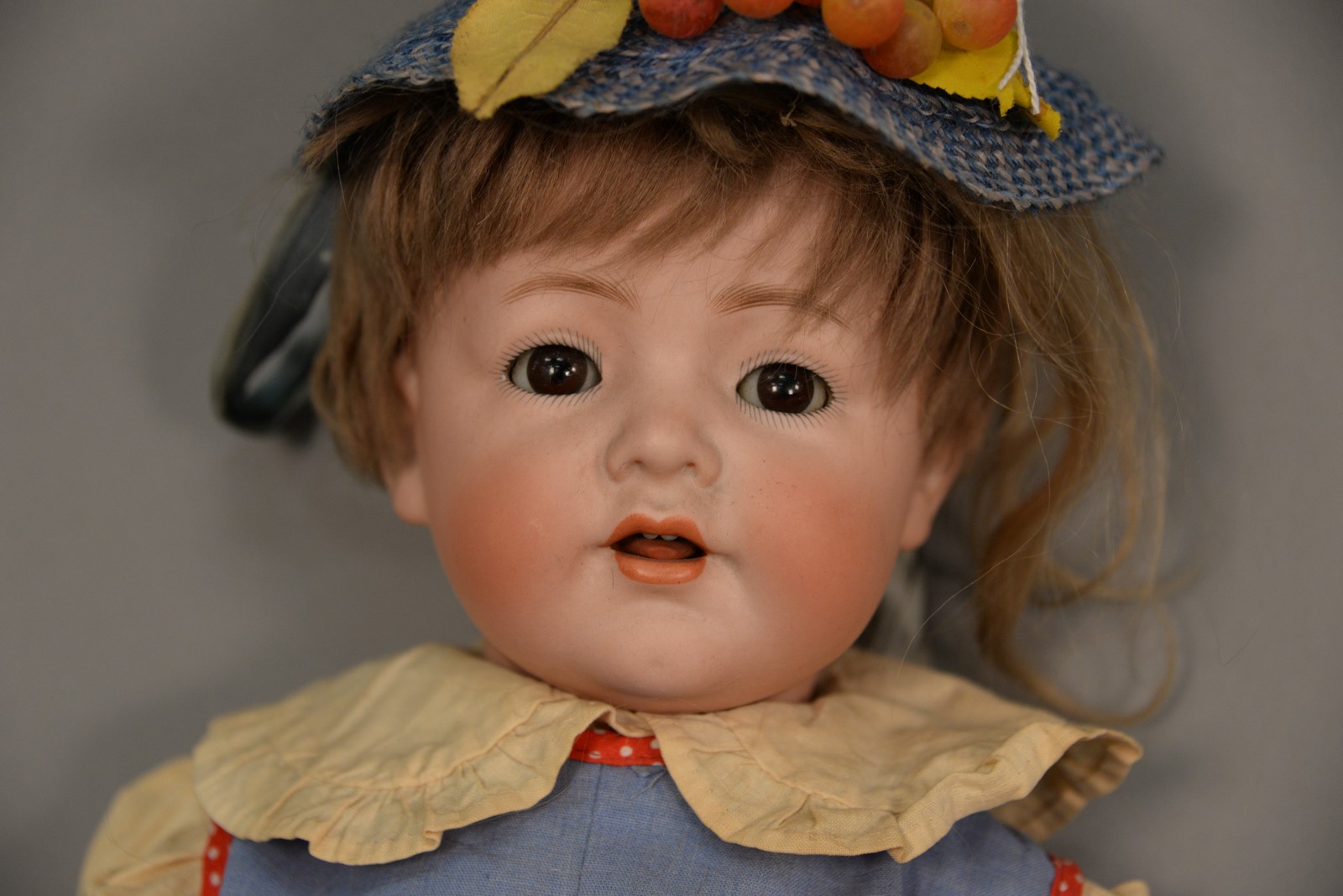 KR 128 bisque head doll on five piece bent limb body. lg. 17 in.