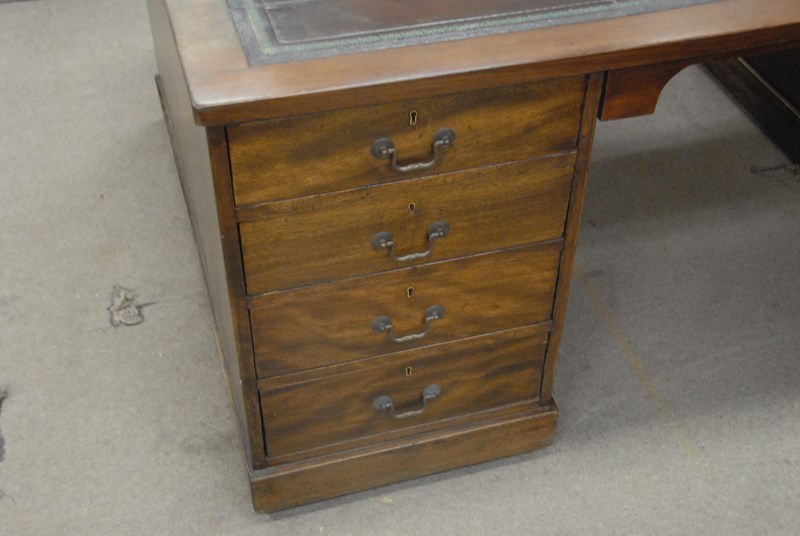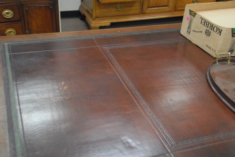 Large mahogany executive desk with inset leather top, top: 46 x 72.