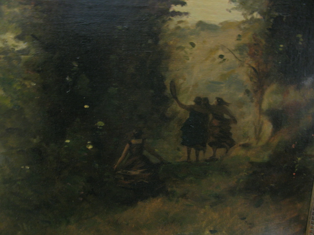 Oil on canvas Morning Dance in the Woods in the manner of Corot.