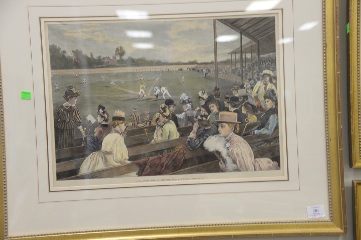 Lot 201: Six sporting Harper’s Weekly colored lithographs including three double page baseball and rowing, and three single page golf, huntin…